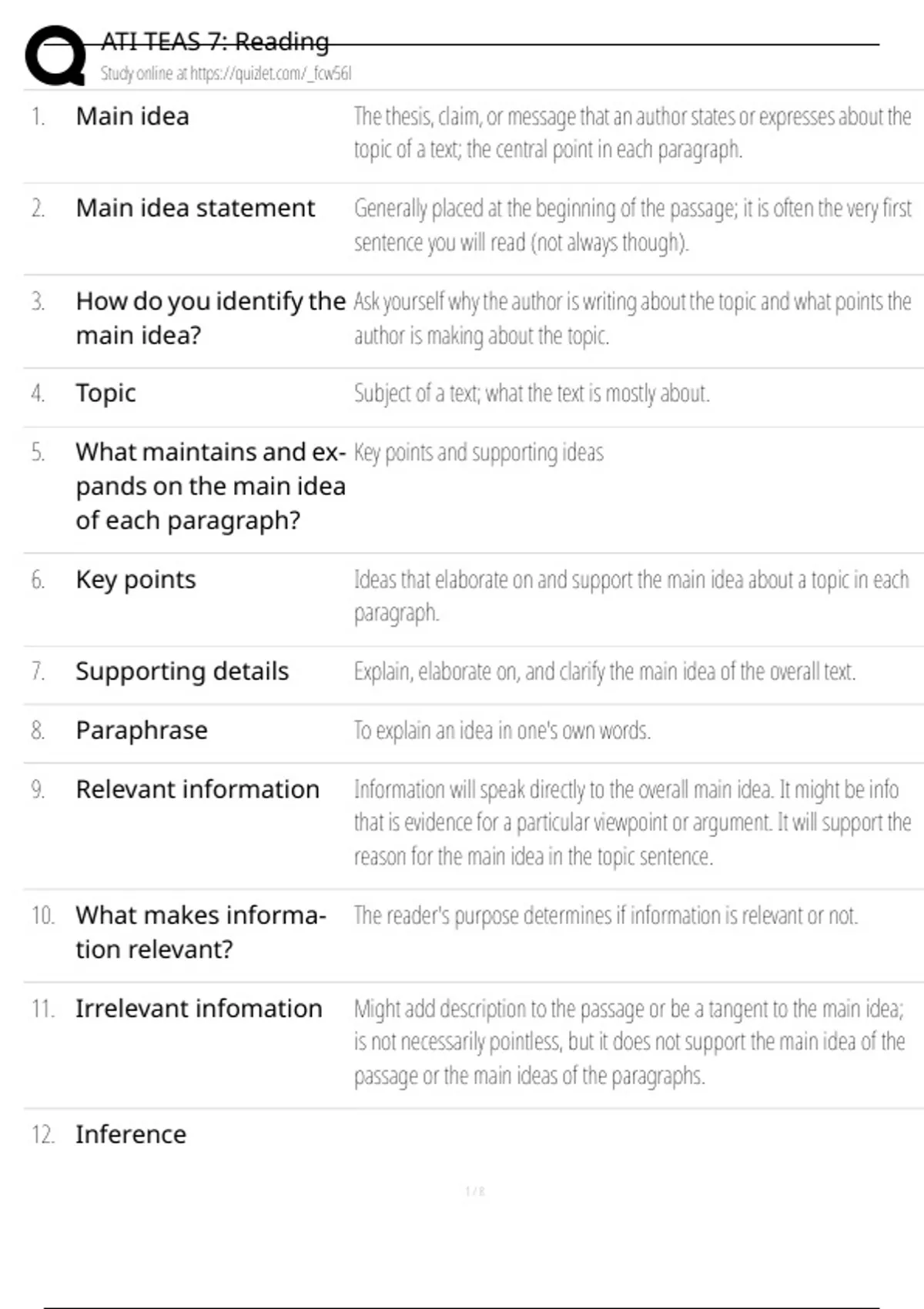, ATI TEAS 7: Reading