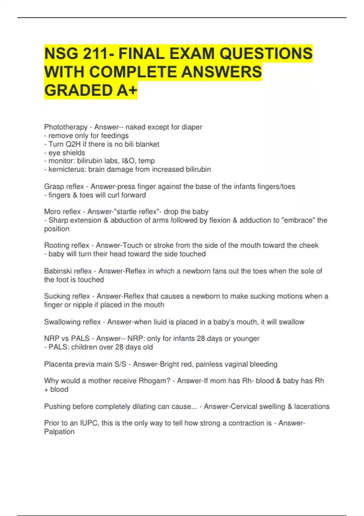 NSG 211- FINAL EXAM QUESTIONS WITH COMPLETE ANSWERS GRADED A+