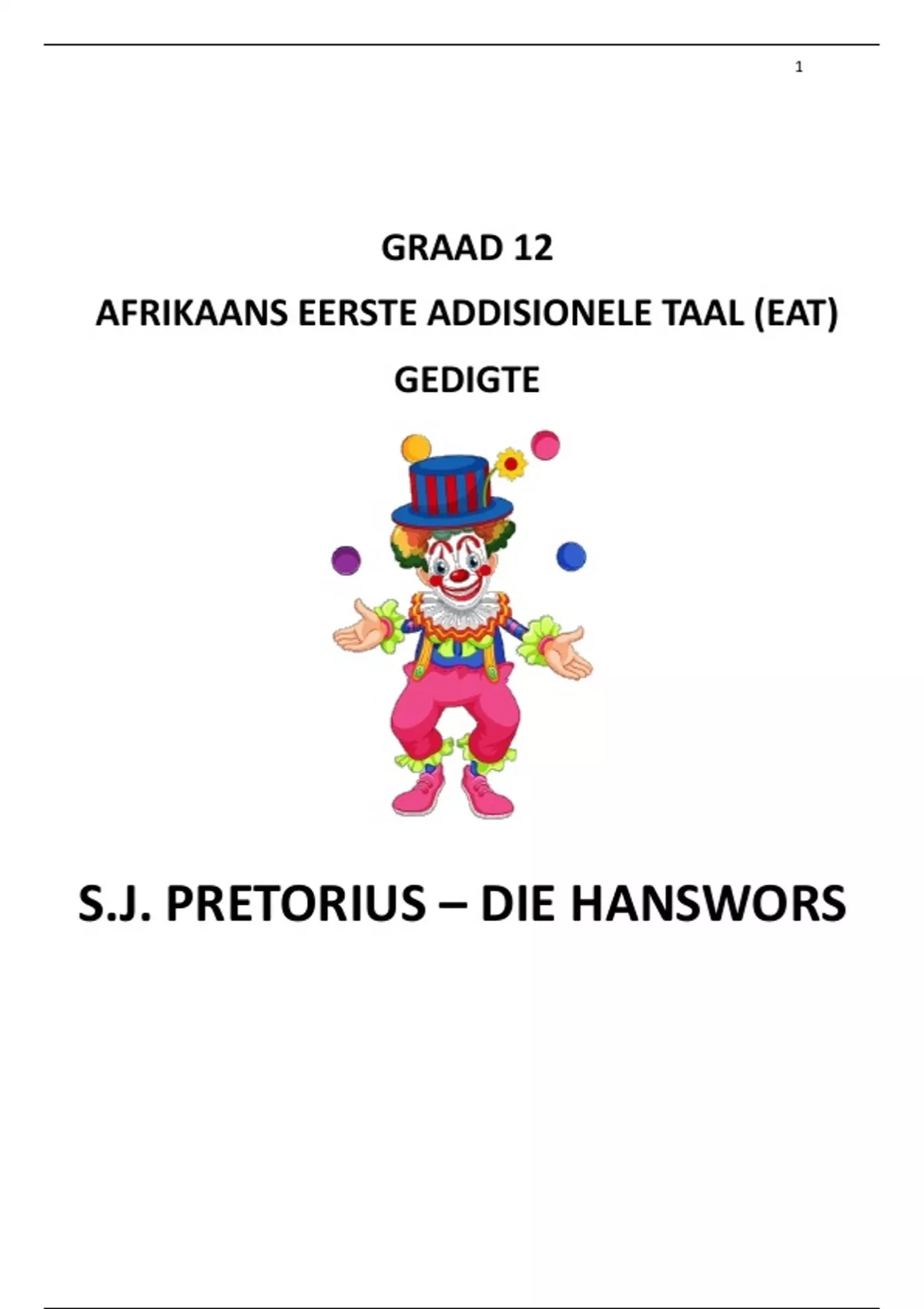 In “Hanswors” maak SJ Pretorius gebruik van ‘n figuur (hanswors/nar/harlekyn) uit die sirkus
