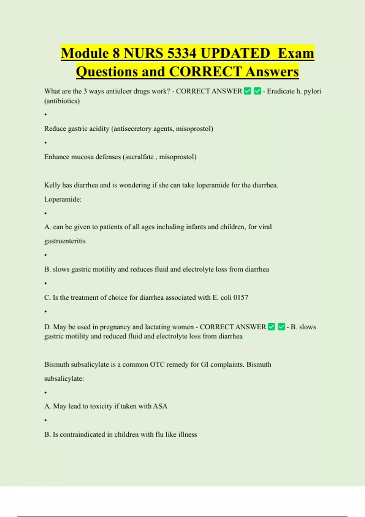 D. Tums to take before each meal - CORRECT ANSWER - B. Bismuth subsalicylate with