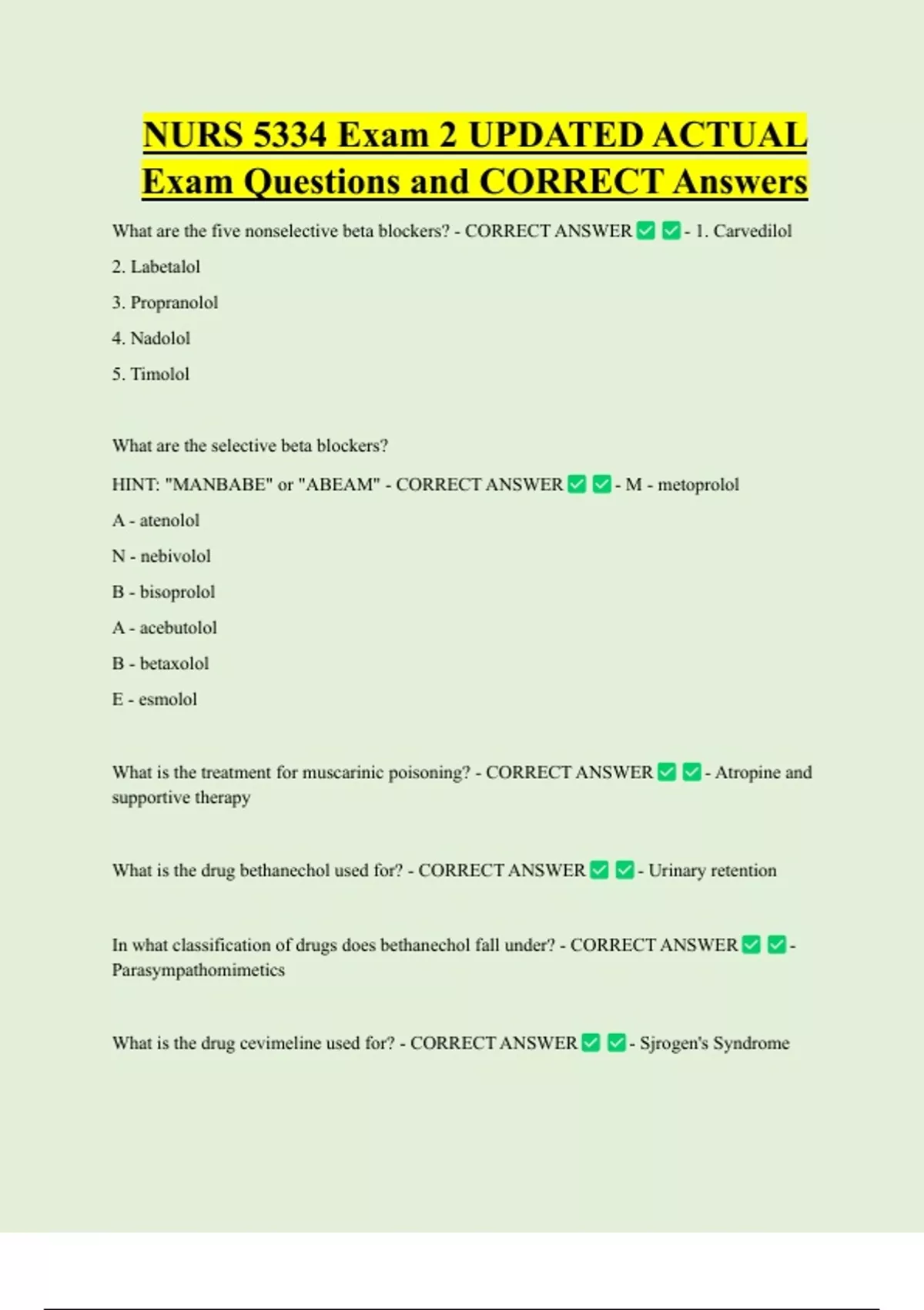 What are the five nonselective beta blockers? - CORRECT ANSWER - 1. Carvedilol