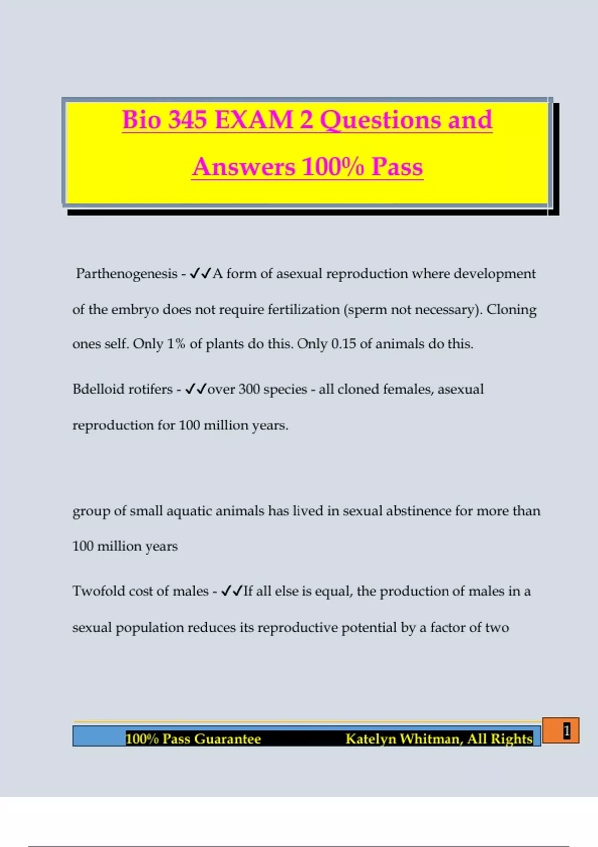 100% Pass Guarantee Katelyn Whitman, All Rights