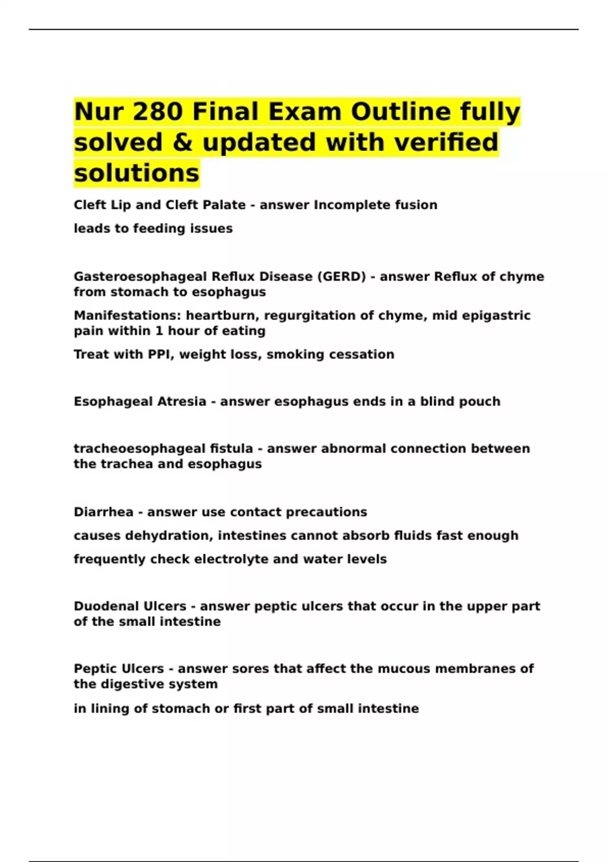Nur 280 Final Exam Outline fully