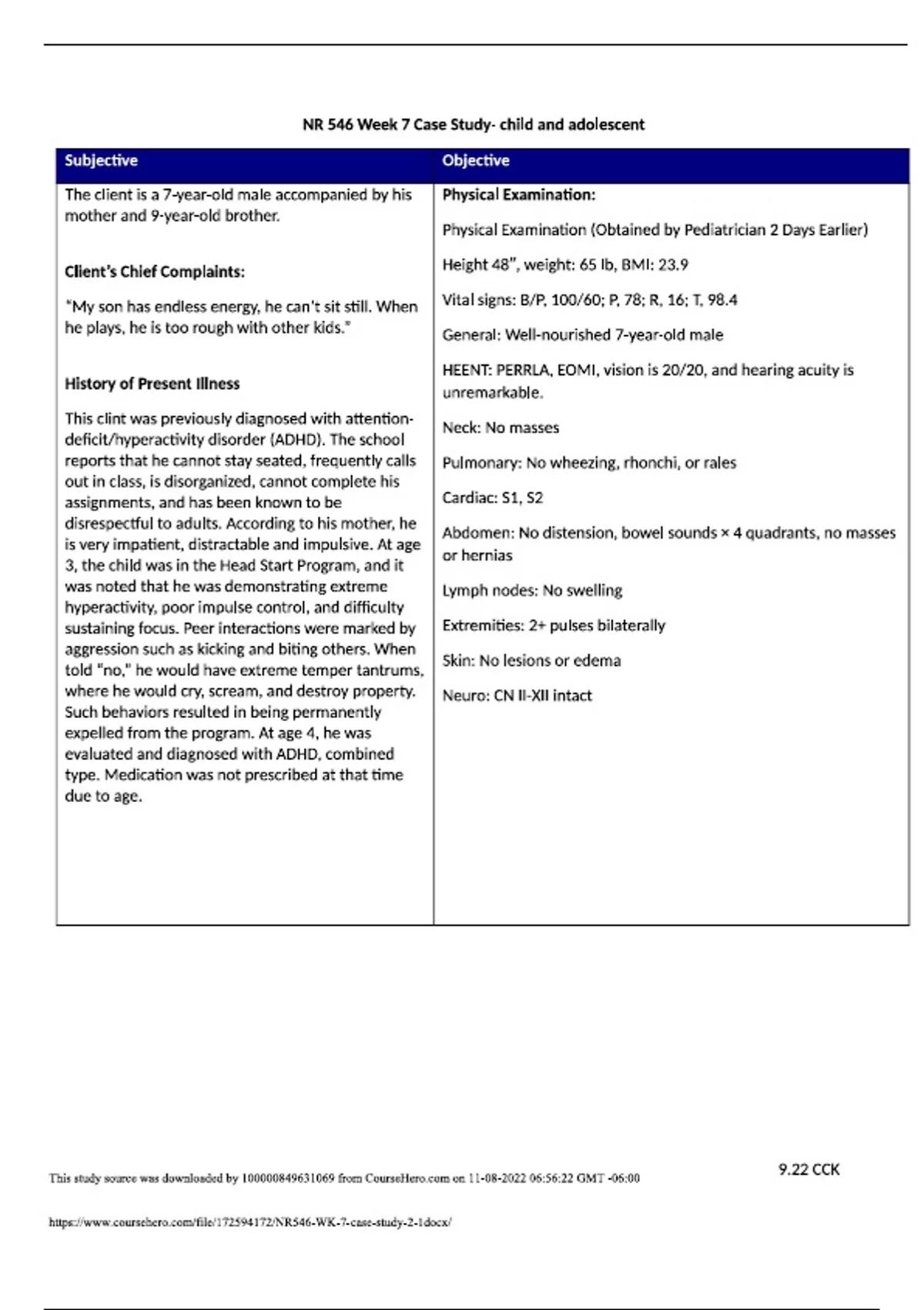 nr 546 week 7 case study child and adolescent