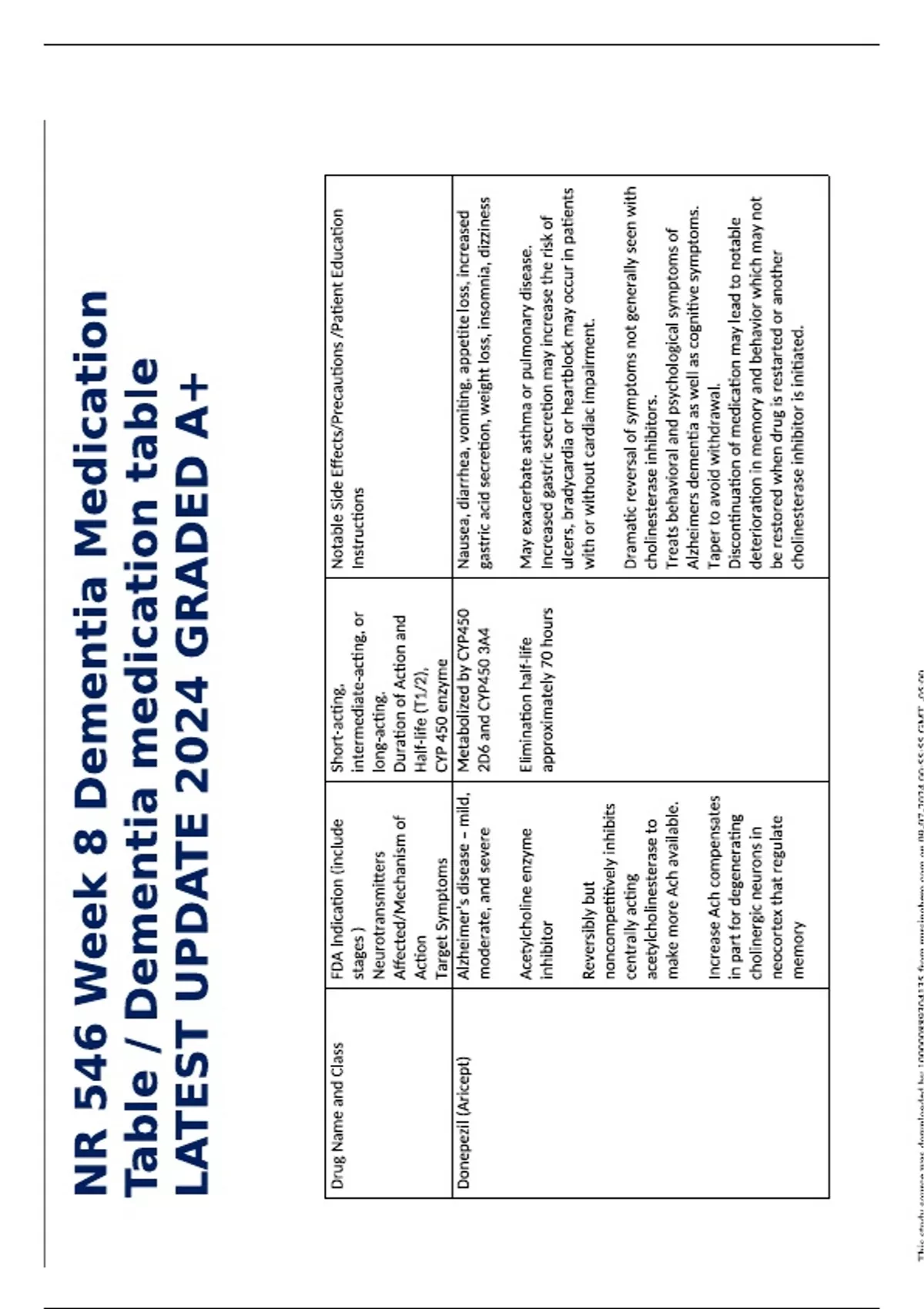 NR 546 Week 8 Dementia Medication Table Dementia medication table LATEST UPDATE 2024 GRADED A+.pdf 1