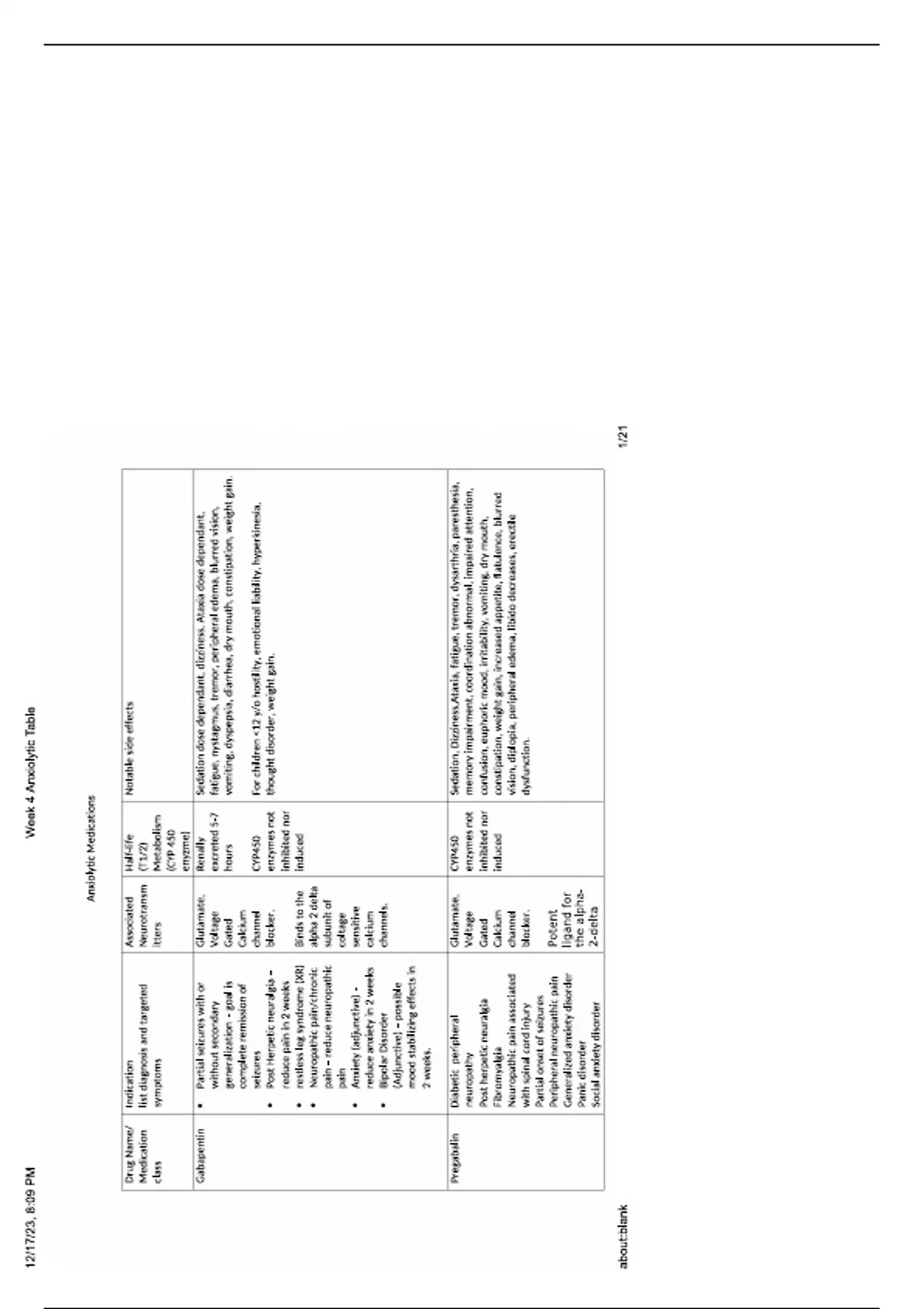 nr 546 week 4 anxiolytic medication table
