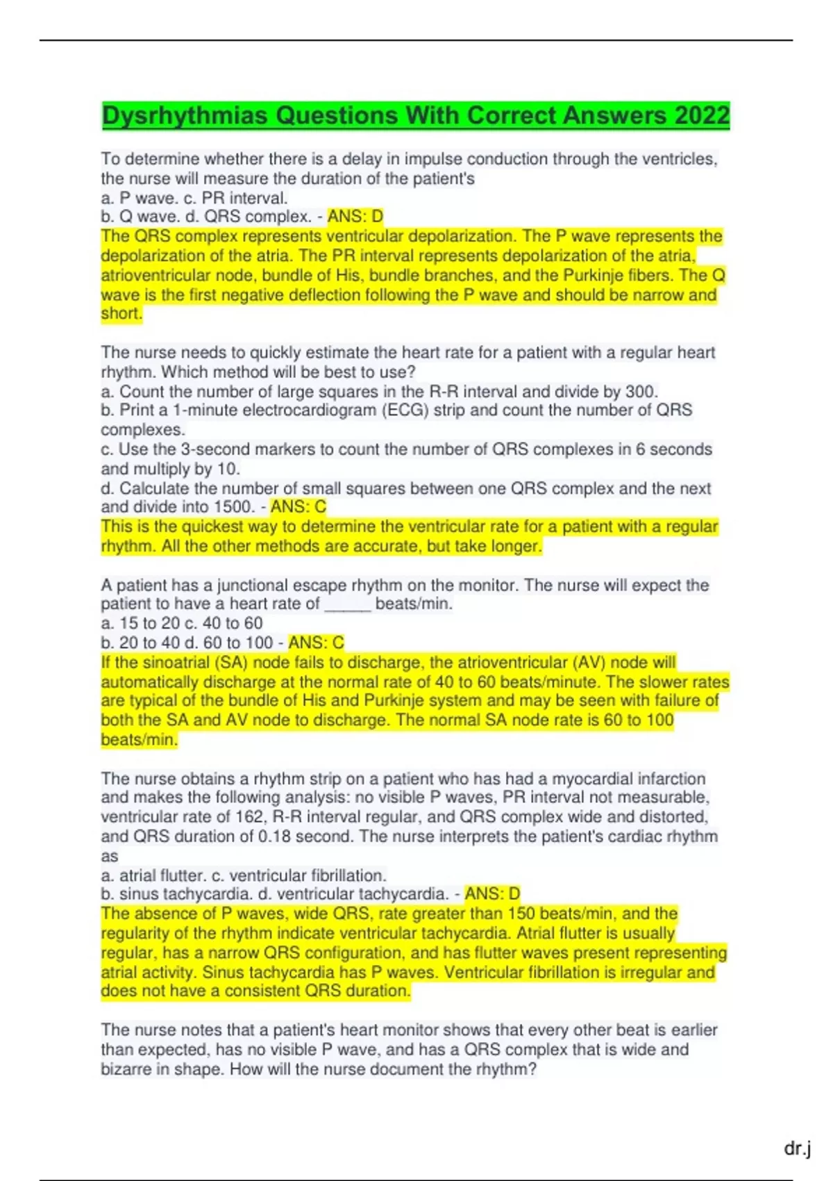 d. Decrease in premature ventricular contractions - ANS: A