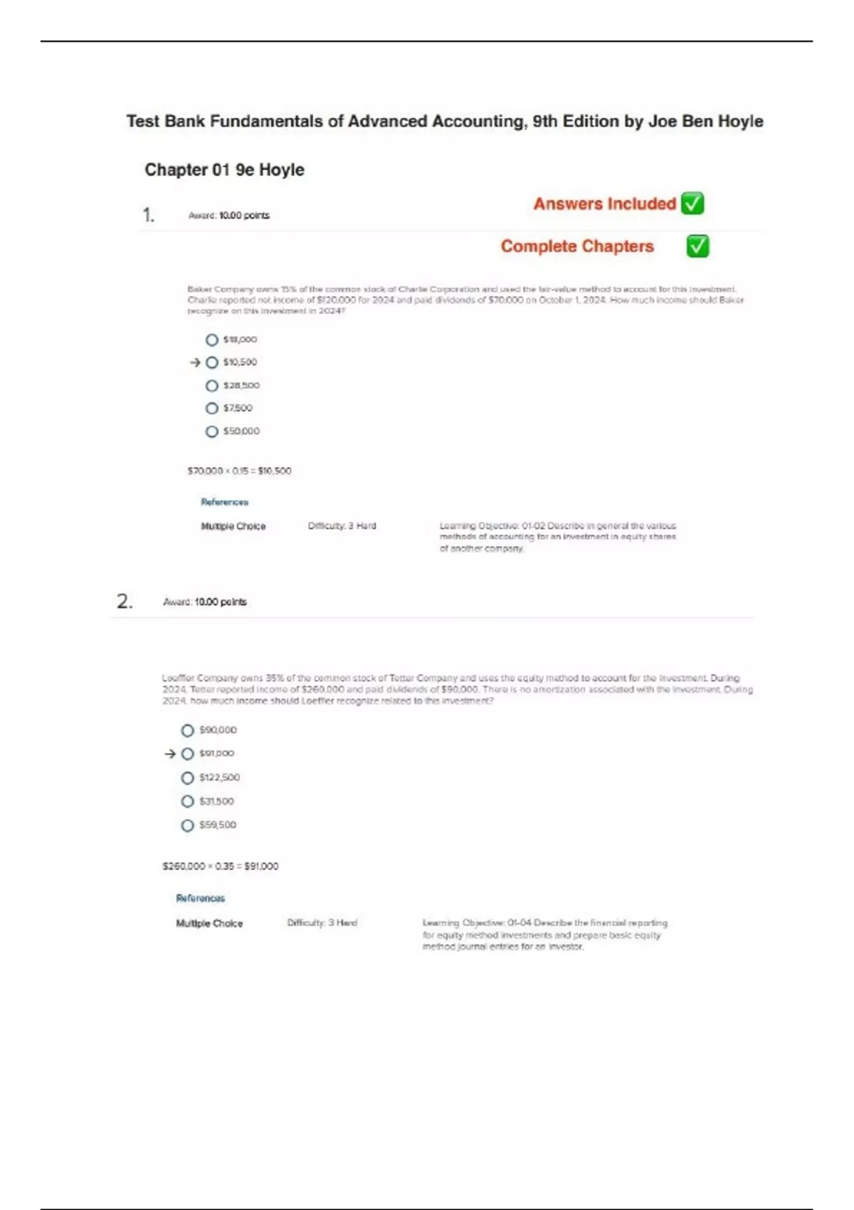 Solutions for Fundamentals of Advanced Accounting, 9th Edition by Joe Ben H