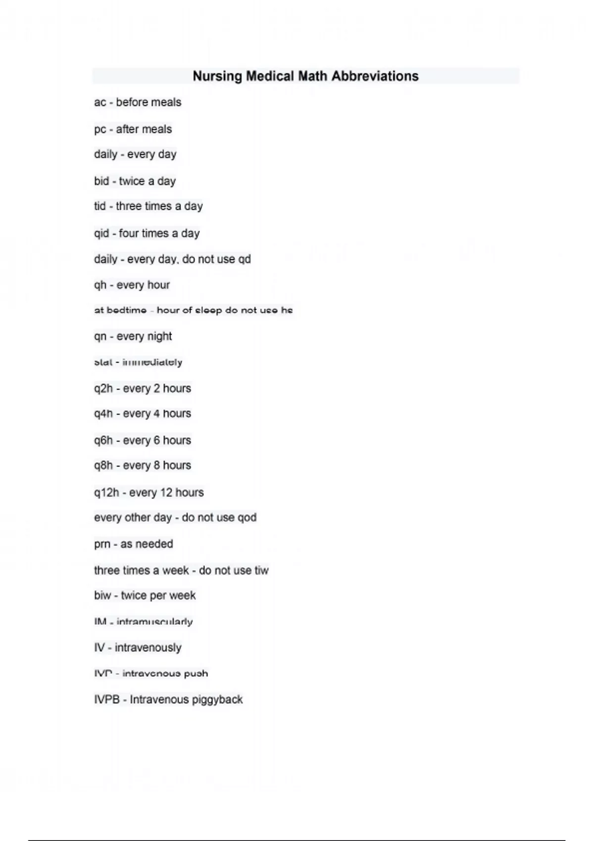 Nursing Medical Math Abbreviations
