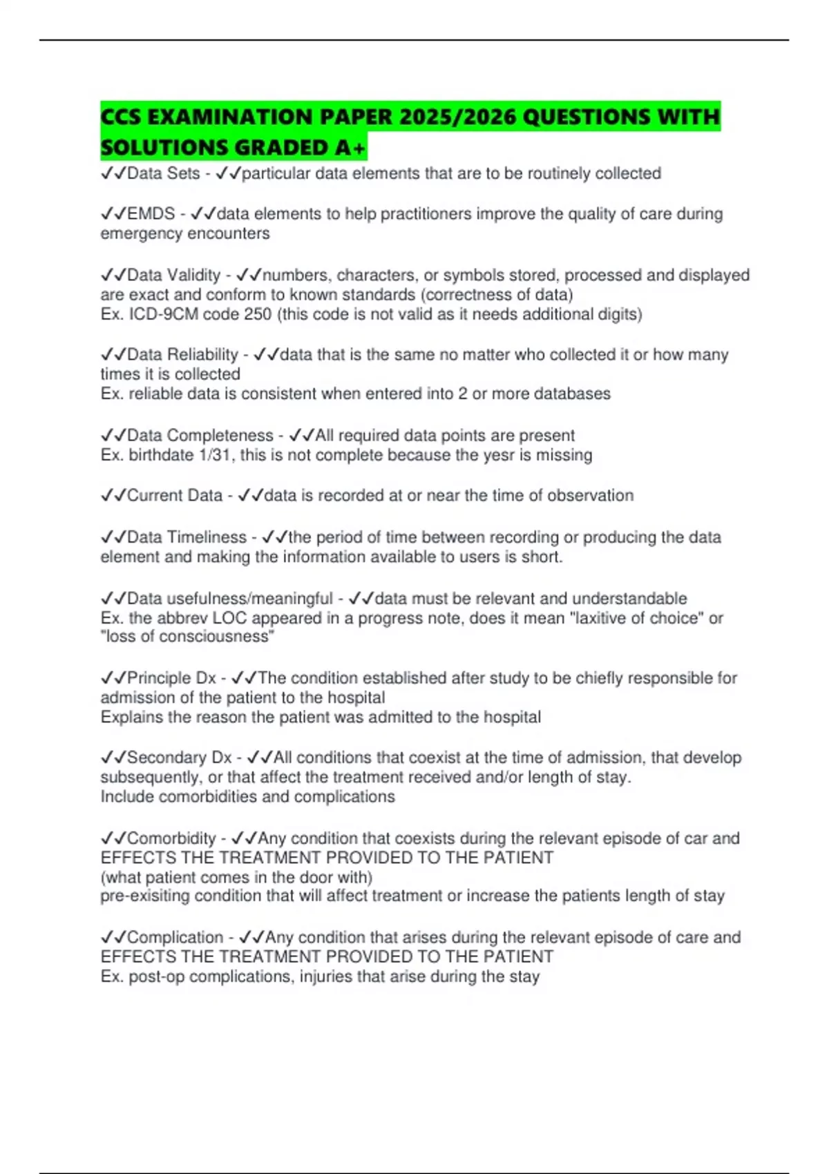 Welcome to Exam Docs Hub, the ultimate online destination for high-quality exam documents, study guides, and academic resources to help you excel in your studies! Whether you're preparing for final exams, standardized tests, certifications, or coursework, we provide comprehensive and well-structured materials to boost your confidence and performance. Our collection includes: ✅ Past exam papers for various subjects ✅ Study guides & summaries to simplify learning ✅ Practice tests & quizzes to assess your knowledge ✅ Detailed solutions & answer keys for effective revision At Exam Docs Hub, we prioritize accuracy, quality, and accessibility. Our resources are carefully curated to meet the needs of students, educators, and professionals. With instant downloads and user-friendly access,