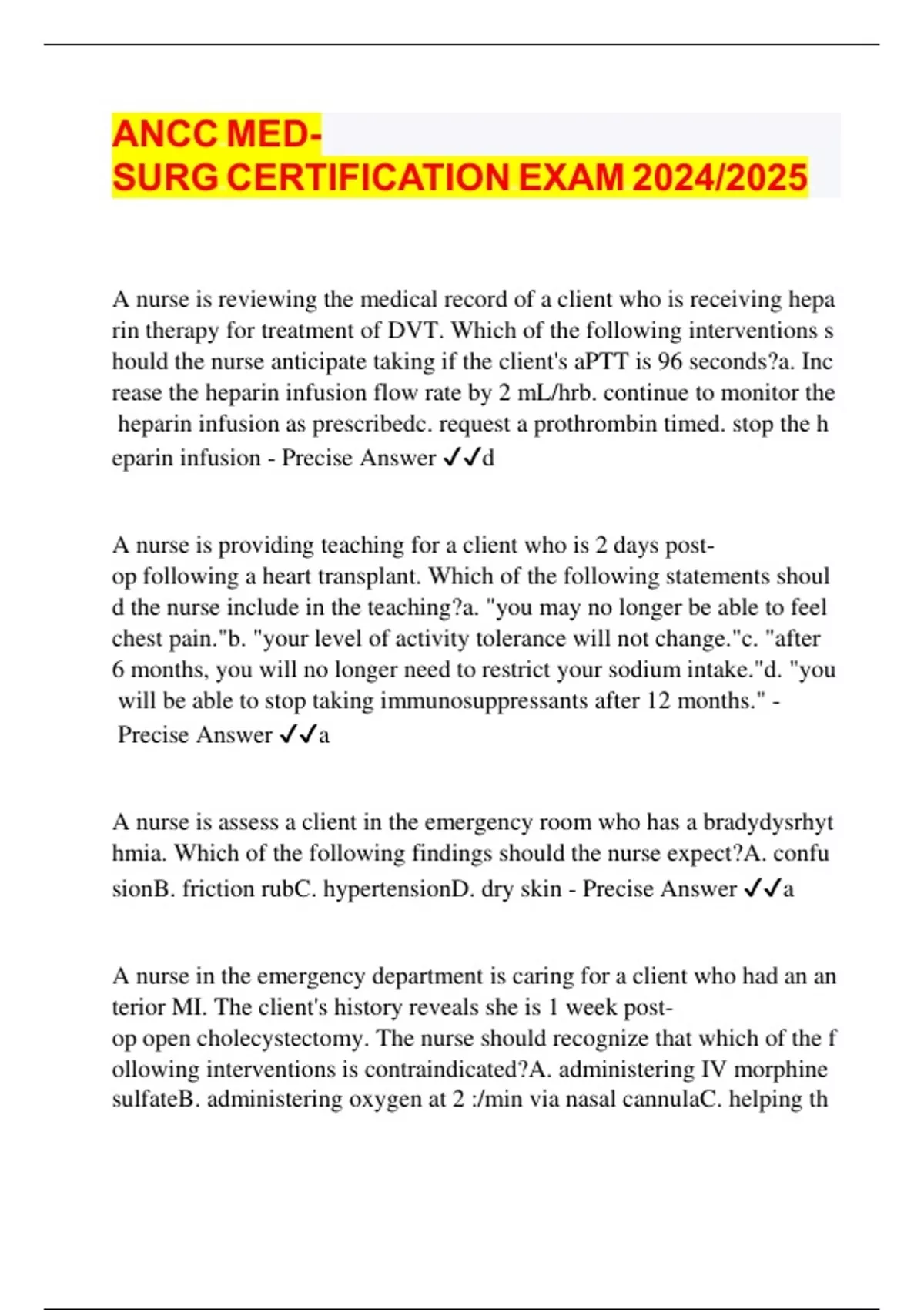 eparin infusion - Precise Answer ✔✔d