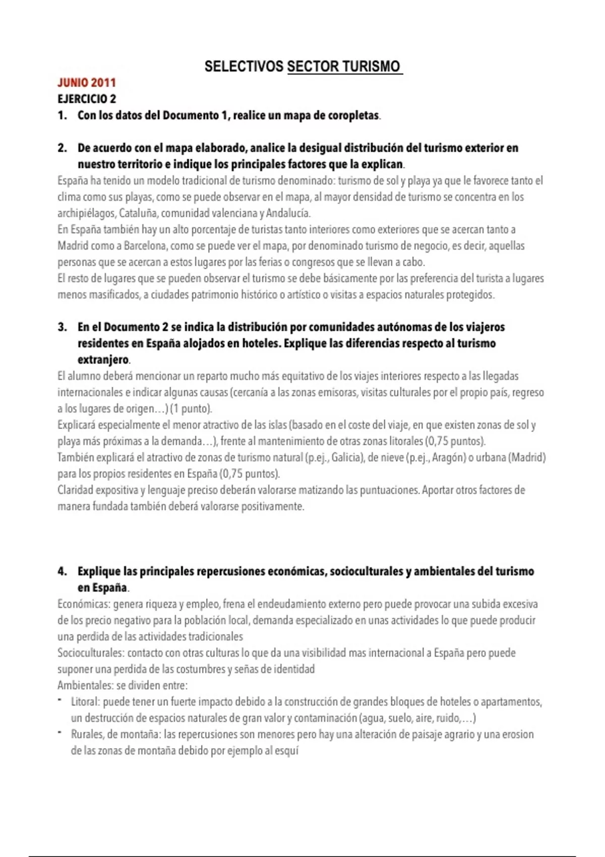 interiores), o comentar cómo el turismo ha servido para dinamizar algunos espacios rurales de escaso empleo no