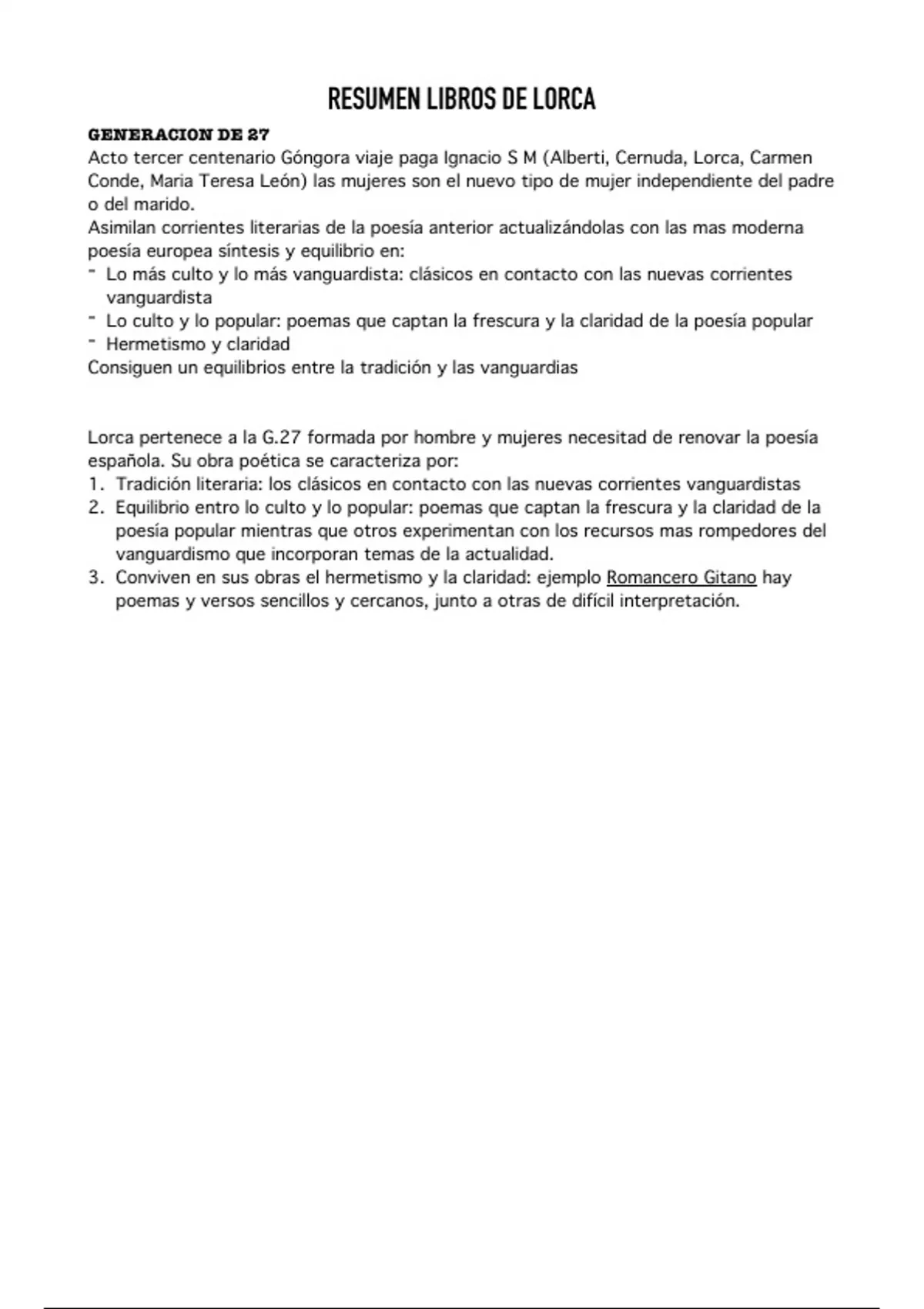 3. Conviven en sus obras el hermetismo y la claridad: ejemplo Romancero Gitano hay