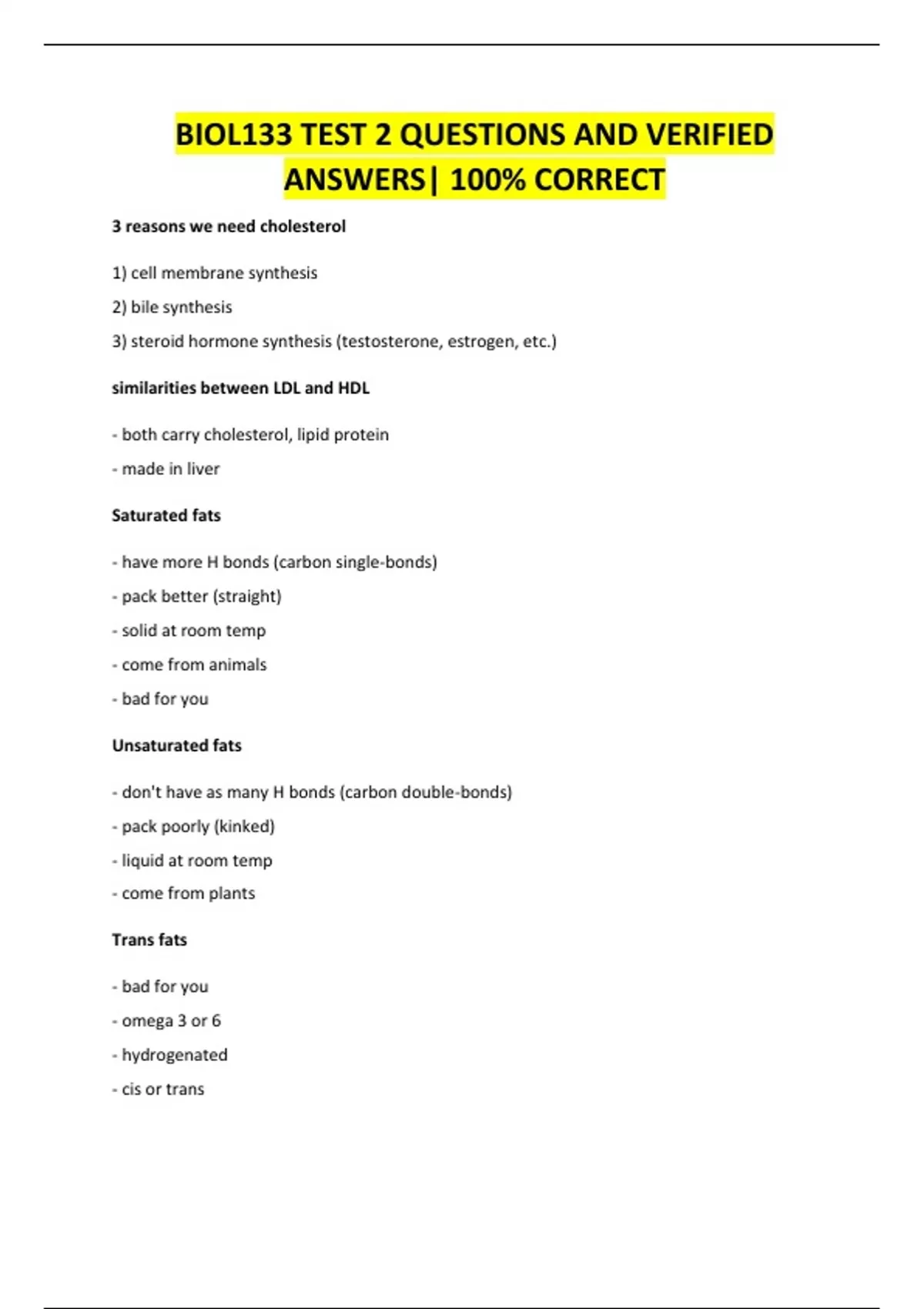 BIOL133 TEST 2 QUESTIONS AND VERIFIED