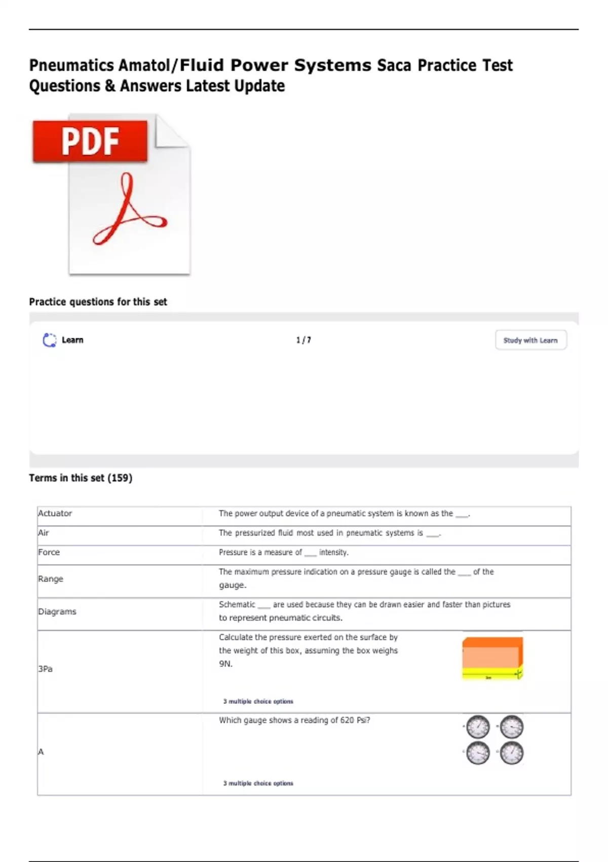 Pneumatics Amatol/Fluid Power Systems Saca Practice Test Questions & Answers Latest Update