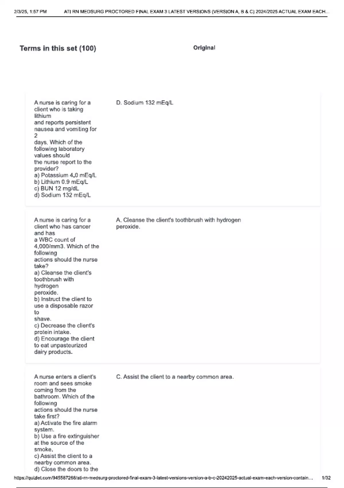 ATI RN MEDSURG PROCTORED FINAL EXAM 3 LATEST VERSIONS (VERSION A, B & C).