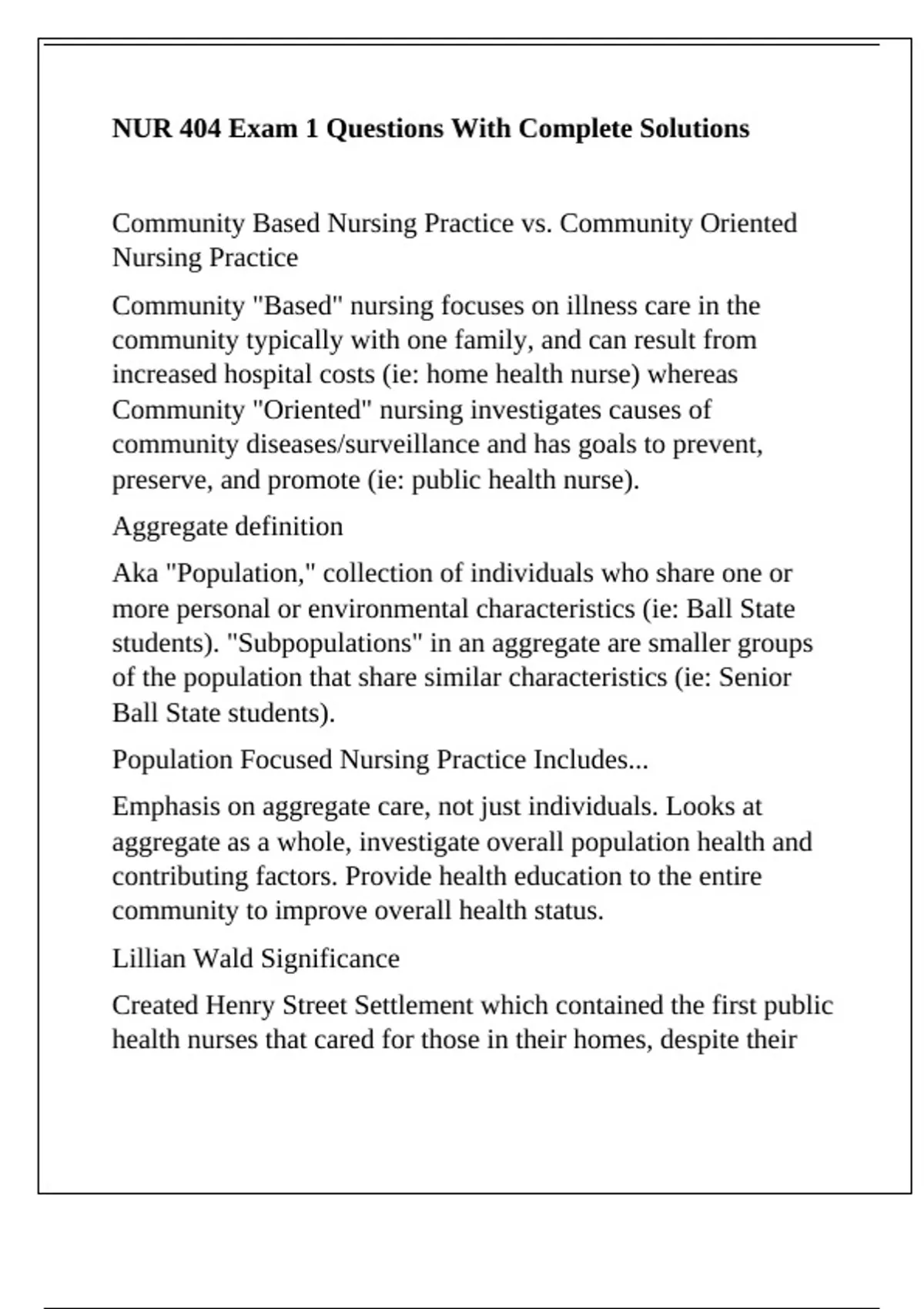 Community Based Nursing Practice vs. Community Oriented