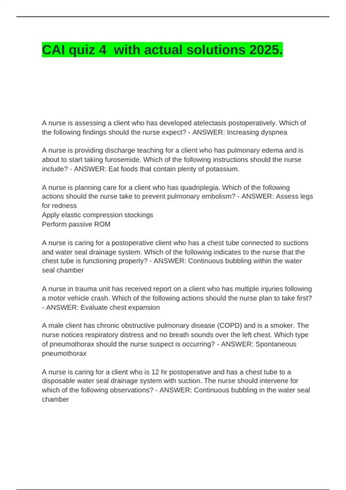 the following findings should the nurse expect? - ANSWER: Increasing dyspnea
