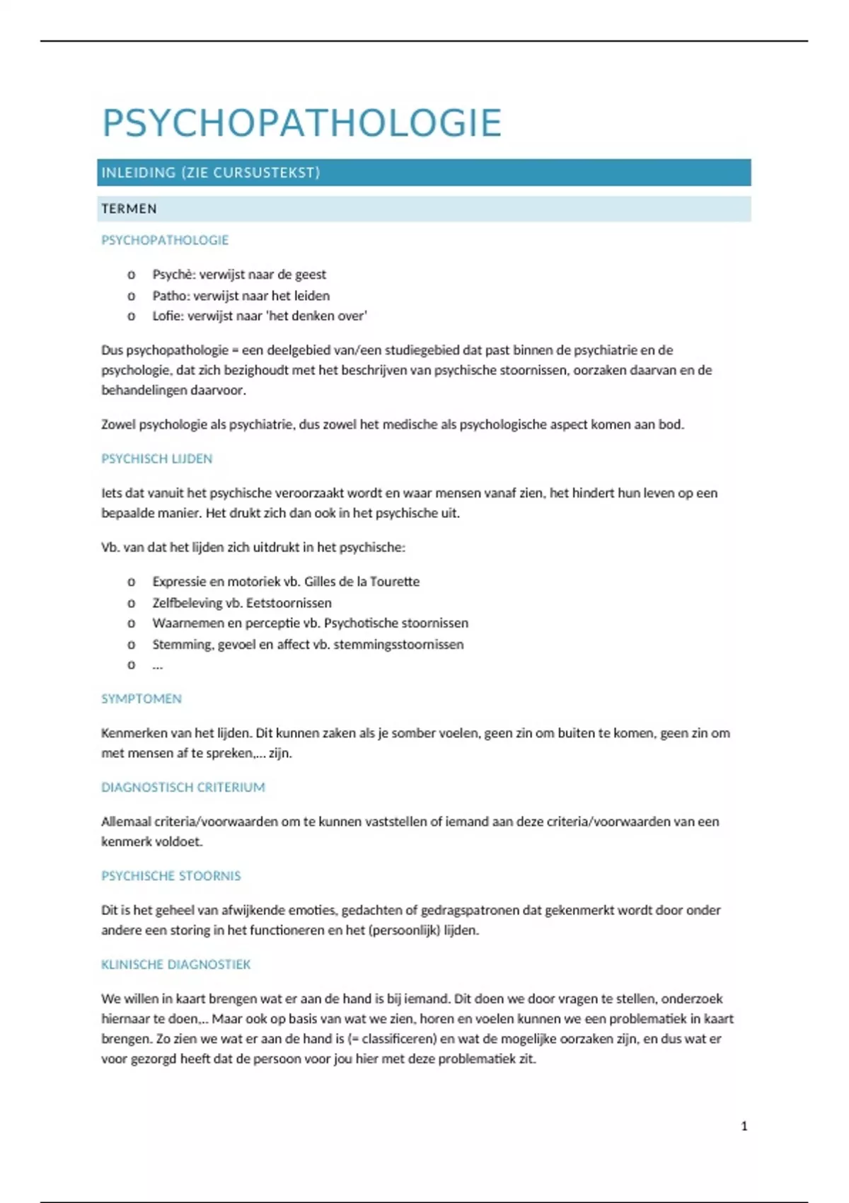 Dus psychopathologie = een deelgebied van/een studiegebied dat past binnen de psychiatrie en de