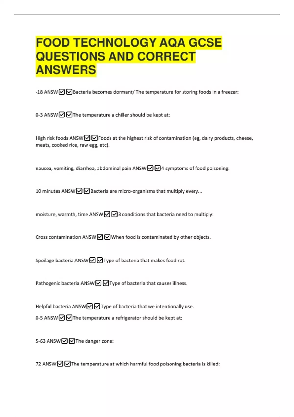 -18 ANSW✅✅Bacteria becomes dormant/ The temperature for storing foods in a freezer:
