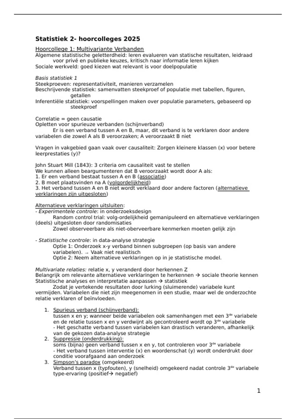 Hoorcollege 1: Multivariante Verbanden