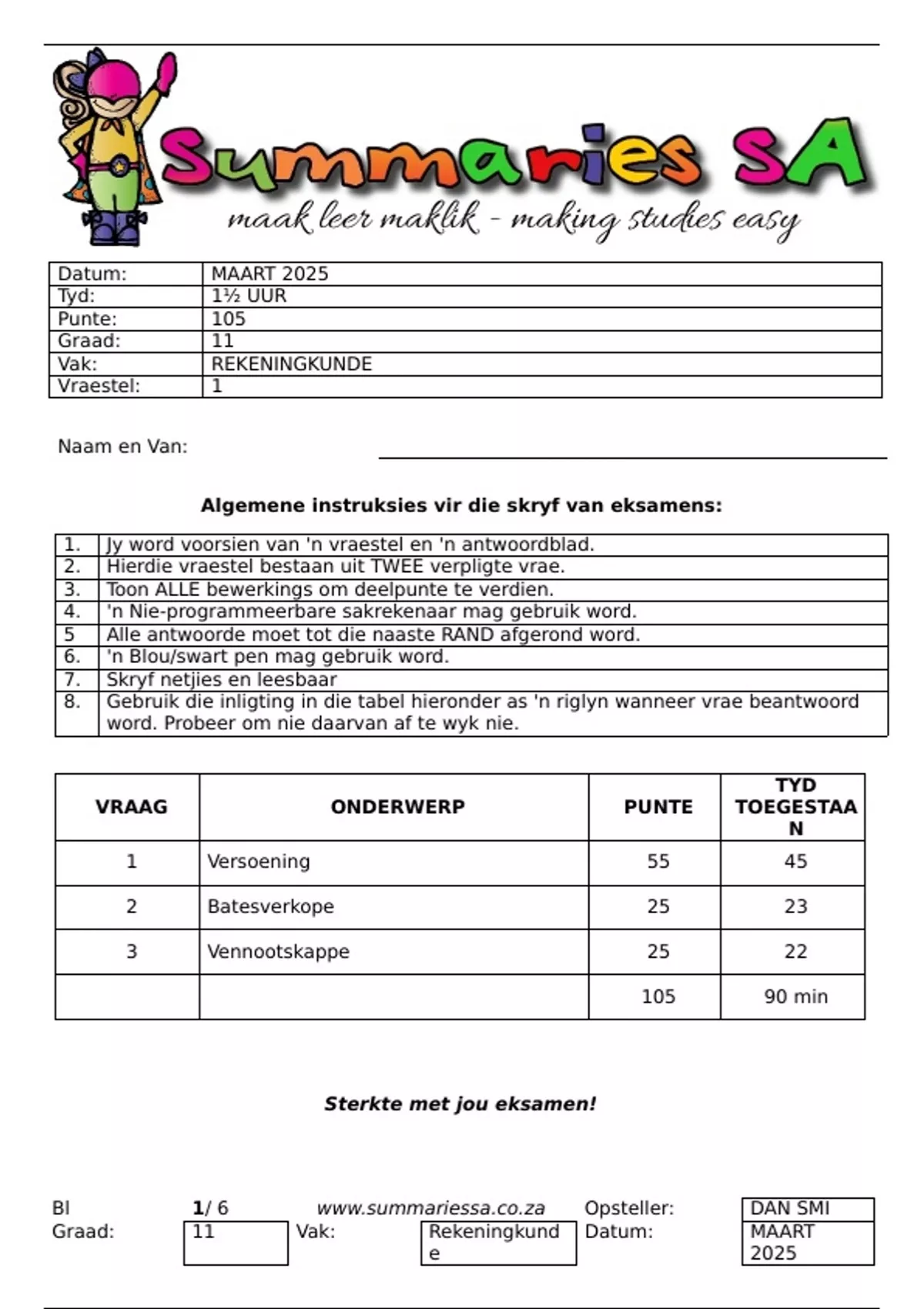 Bl 1/ 6 www.summariessa.co.za Opsteller: DAN SMI