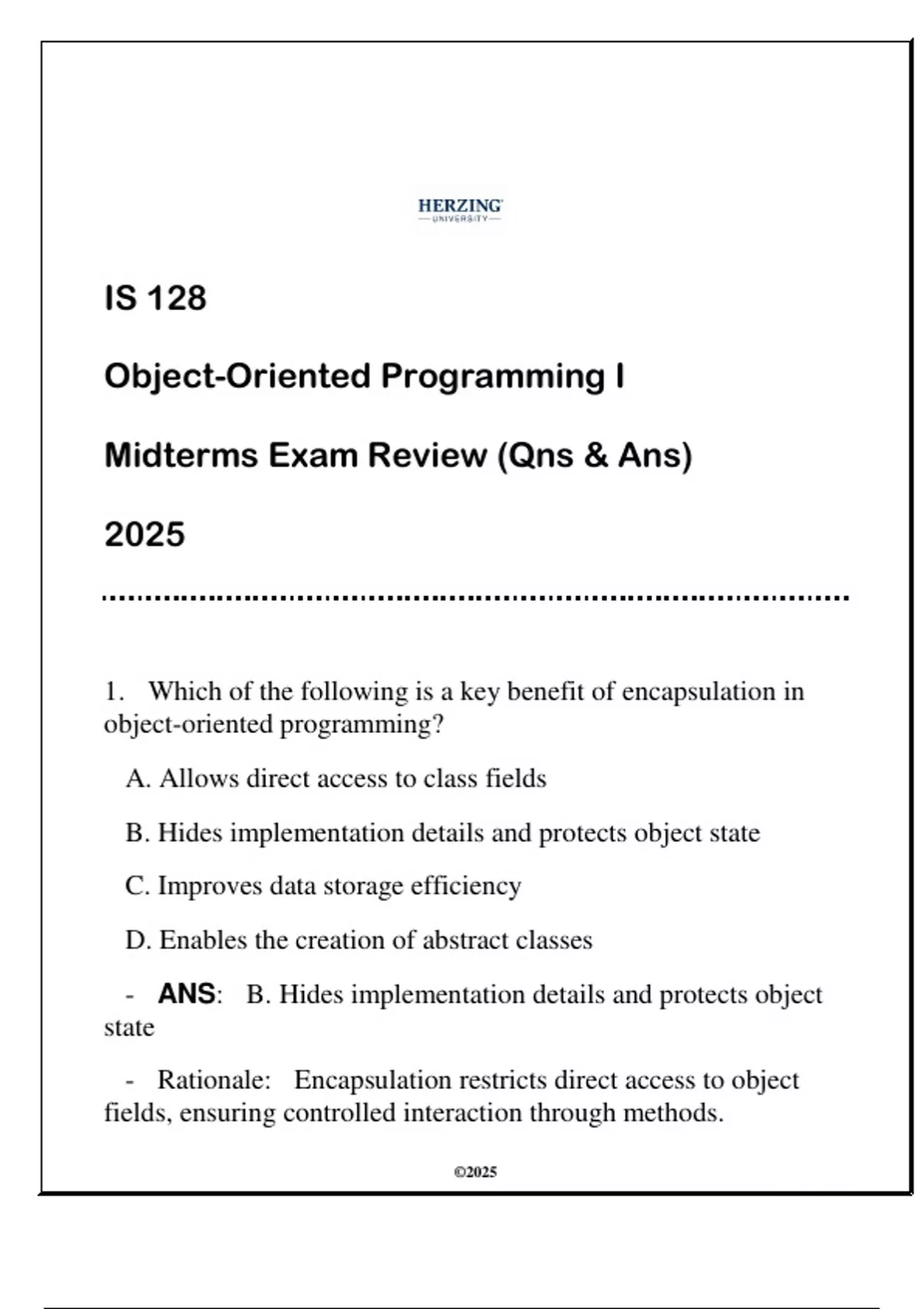 1. Which of the following is a key benefit of encapsulation in
