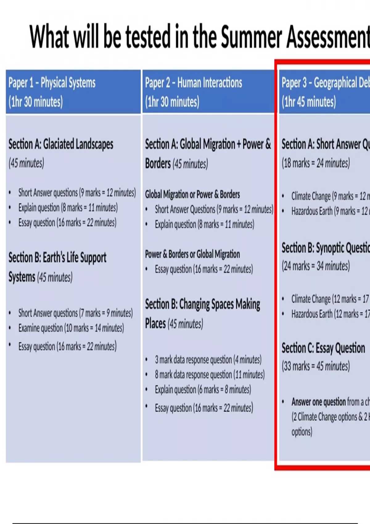 Paper 1 – Physical Systems Paper 2 – Human Interactions Paper 3 – Geographical Deb