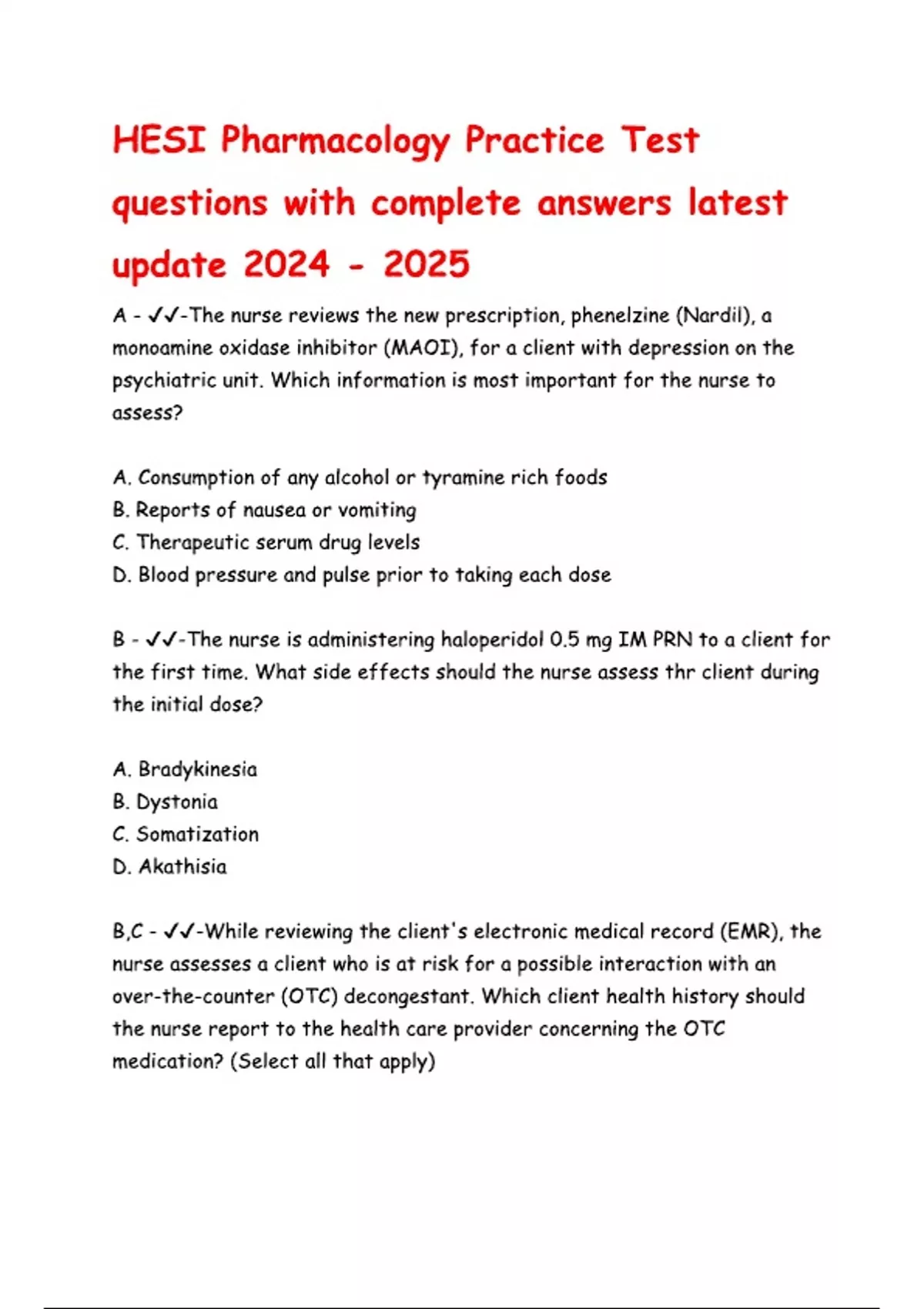 HESI Pharmacology Practice Test questions with complete answers latest update