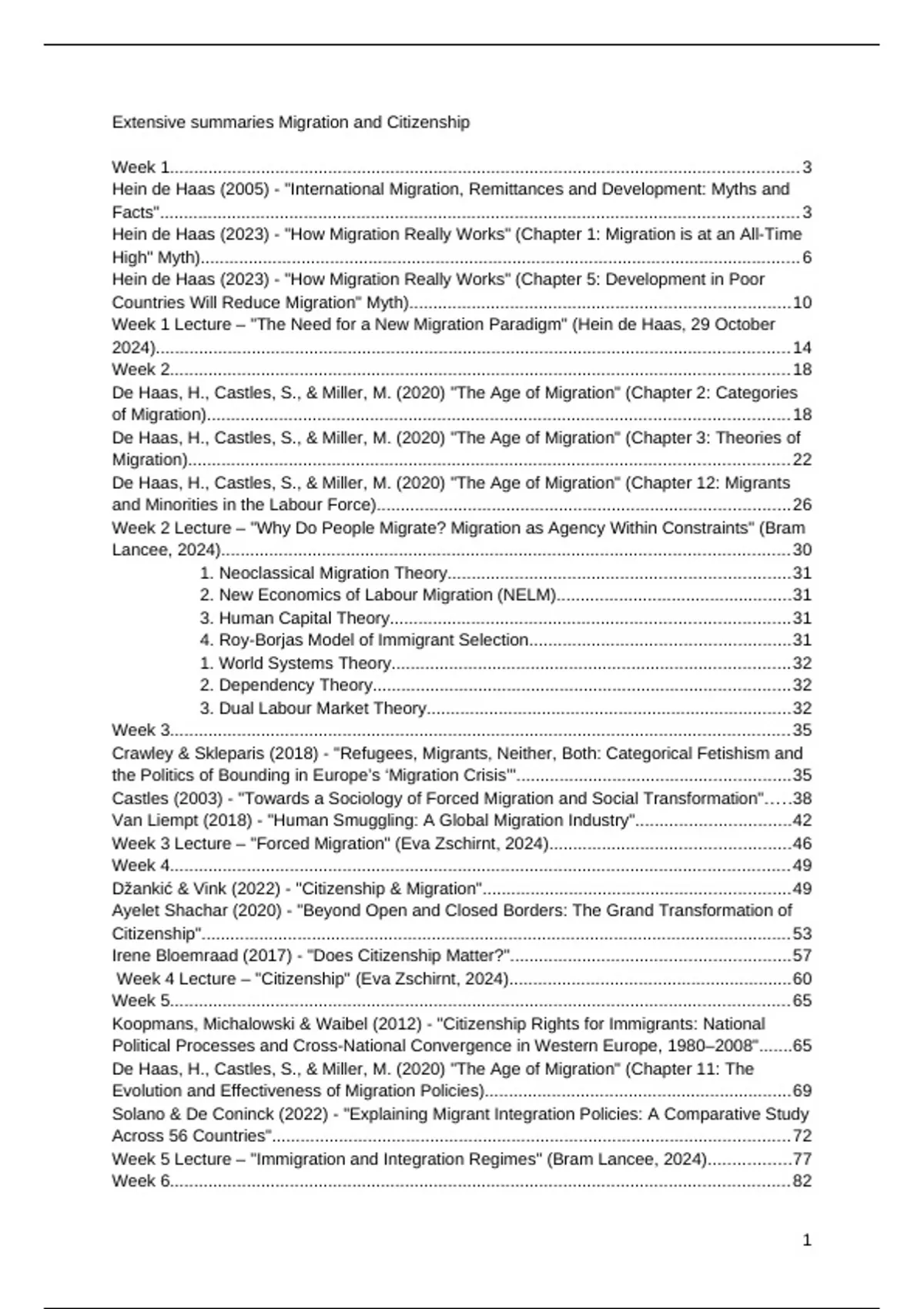 A comprehensive summary of all articles + lectures on the subject of Migration & Citizenship at the UvA.