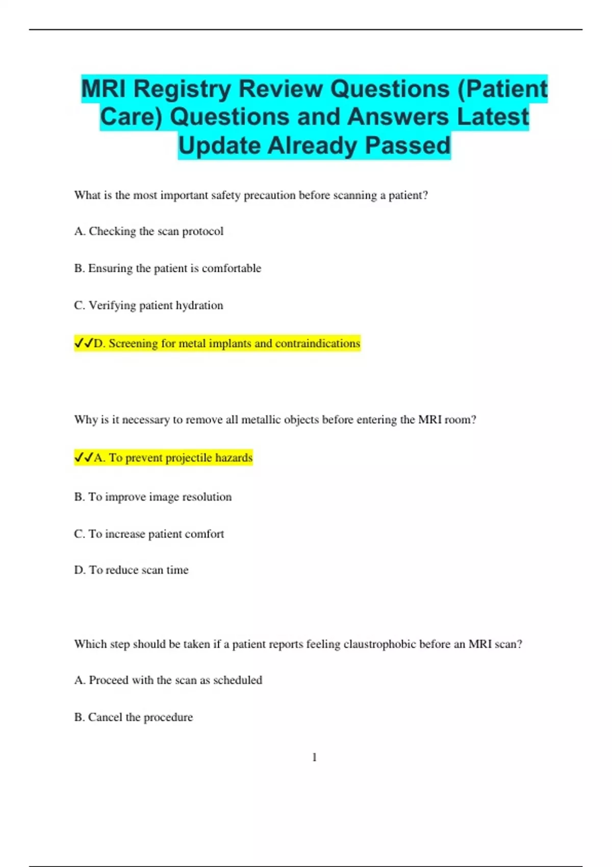 Which step should be taken if a patient reports feeling claustrophobic before an MRI scan?