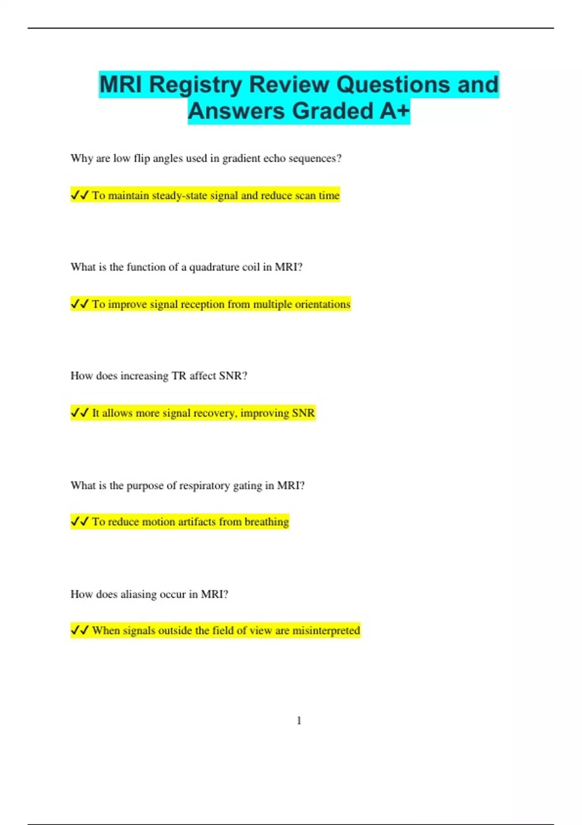 ✔✔ It affects SNR and susceptibility to artifacts