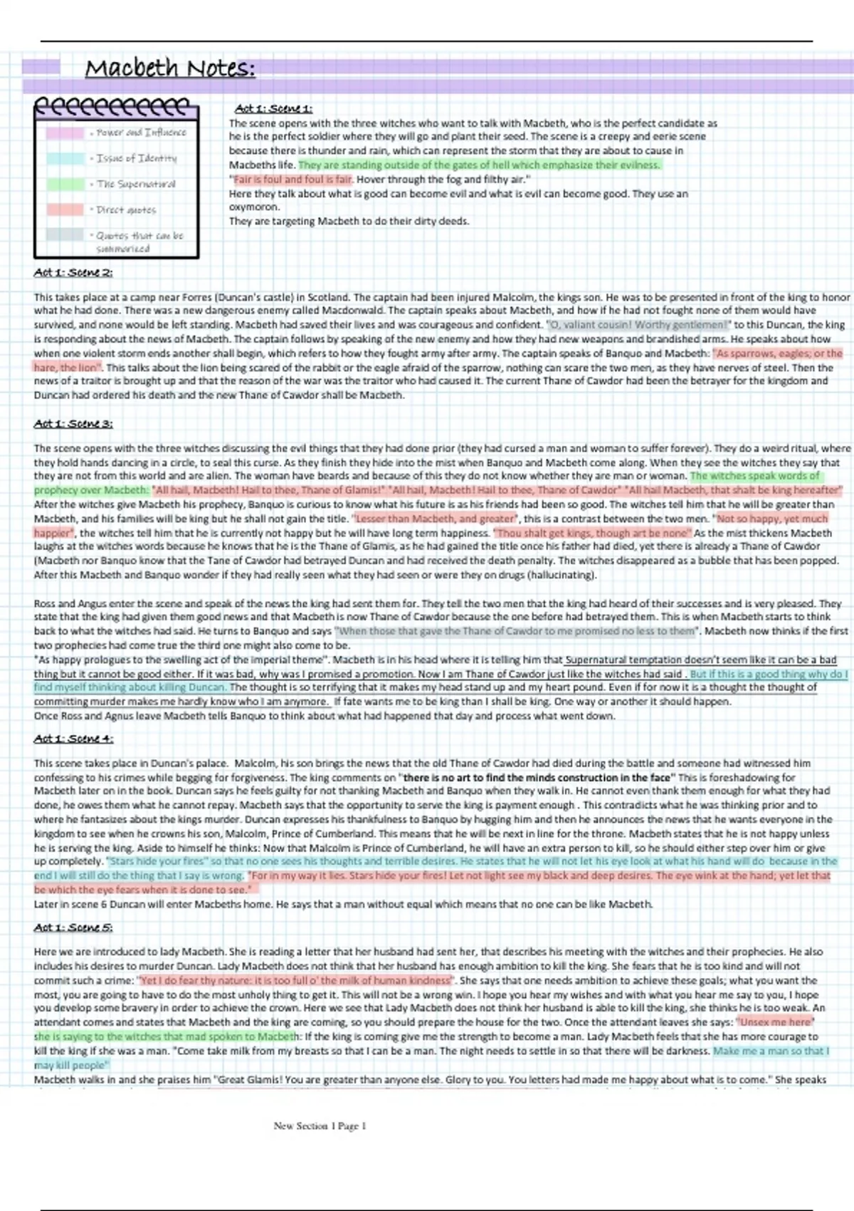 This is a summary of the play Macbeth by William Shakespeare. It included quotes and is colour coordinated