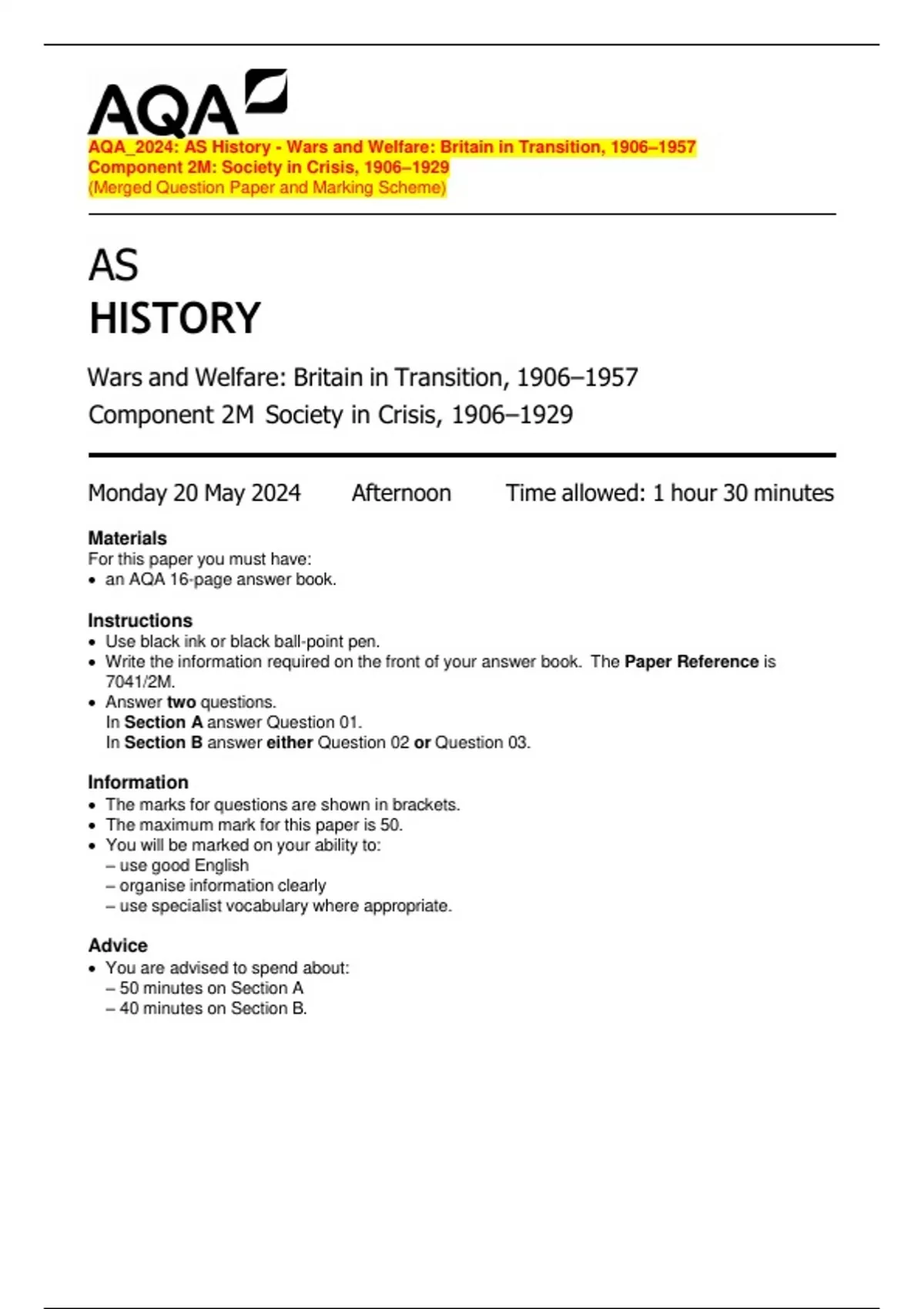 , For AS History: Wars and Welfare: Britain in Transition, 1906–1957, Component 2M: Society in Crisis,