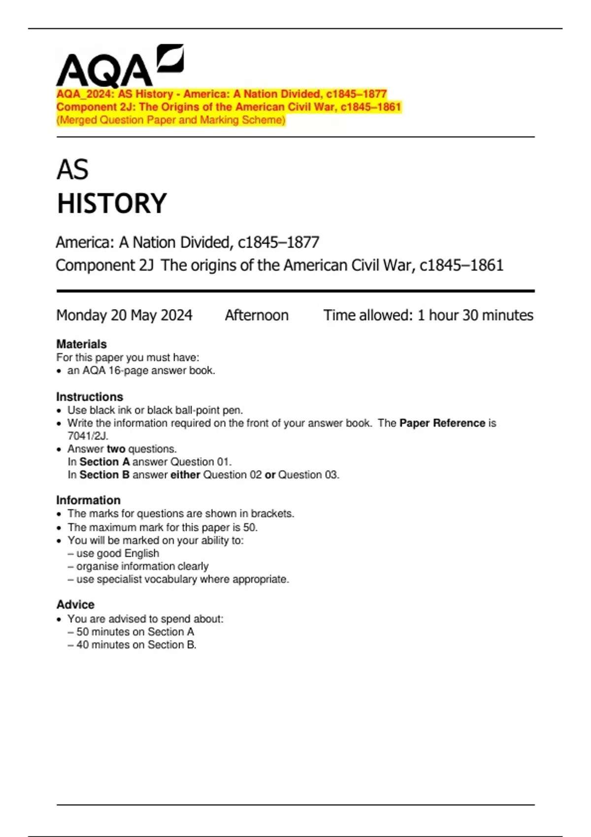– 50 minutes on Section A