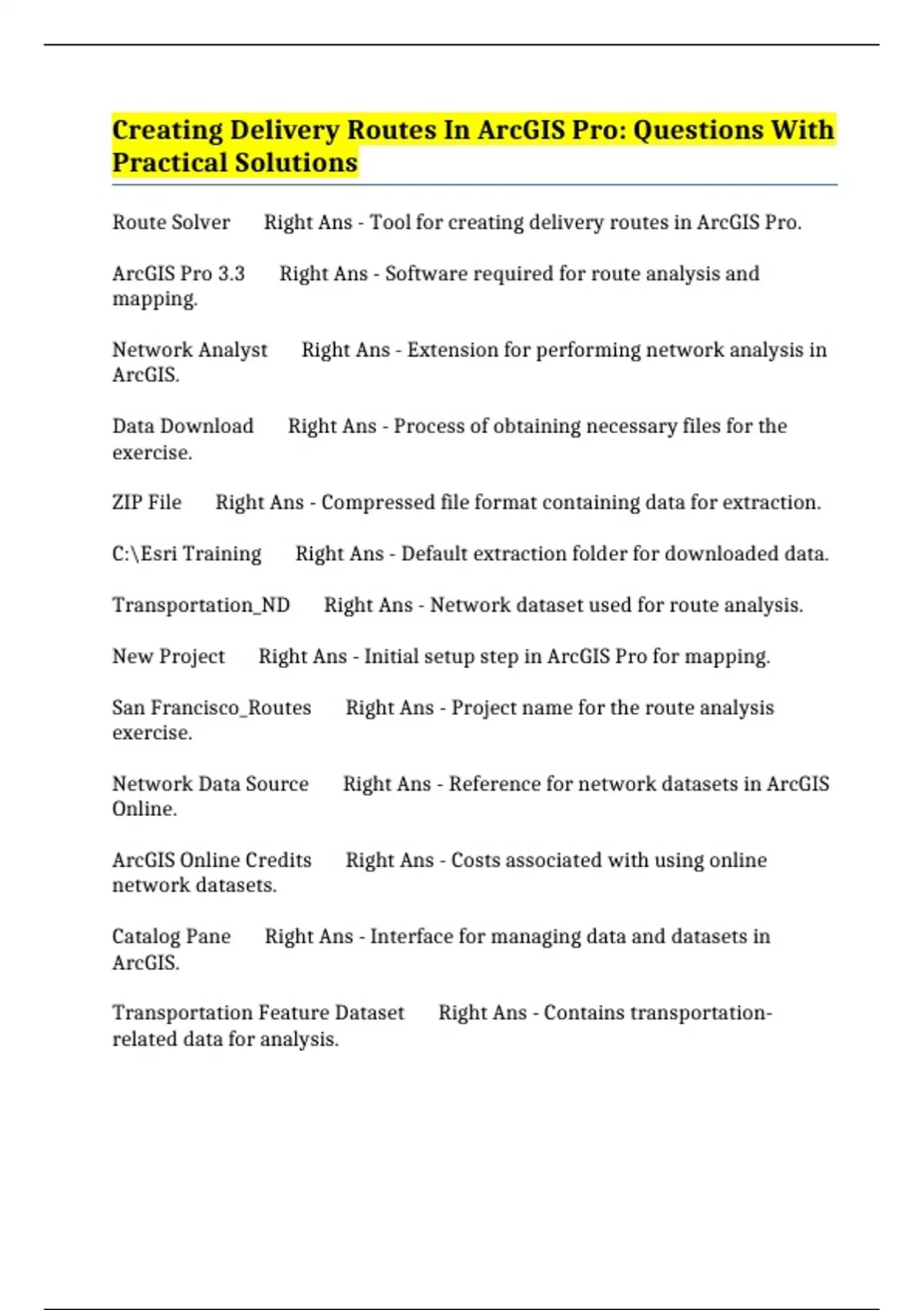 ArcGIS Pro 3.3 Right Ans - Software required for route analysis and