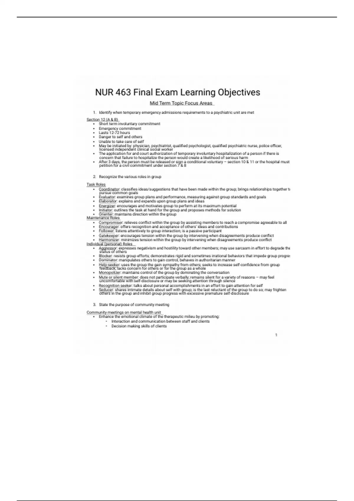 1. Identify when temporary emergency admissions requirements to a psychiatric unit are met