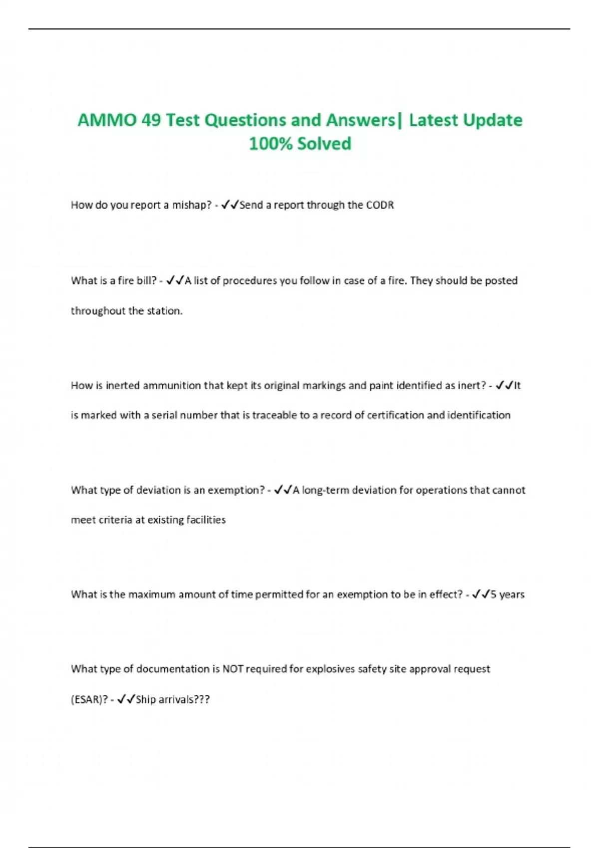 AMMO 49 Test Questions and Answers| Latest Update 100% Solved
