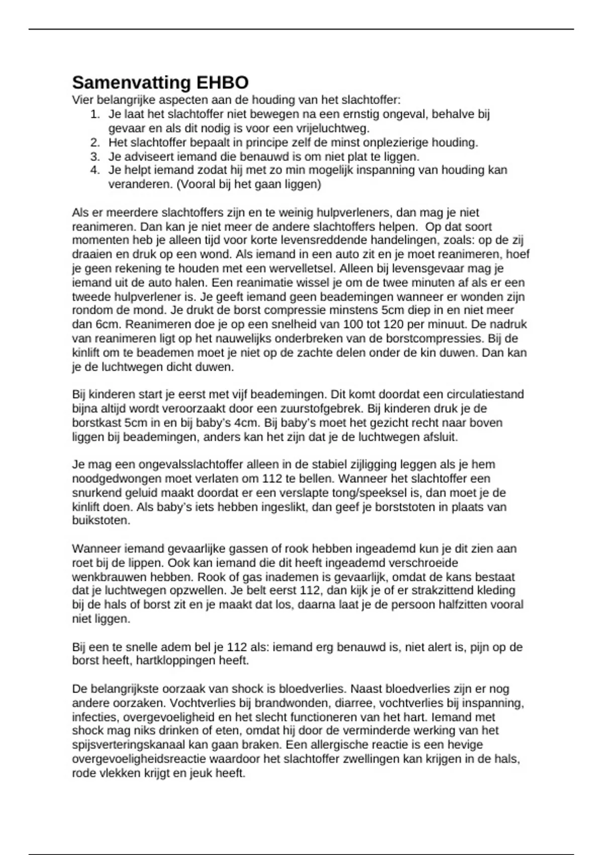 momenten heb je alleen tijd voor korte levensreddende handelingen, zoals: op de zij