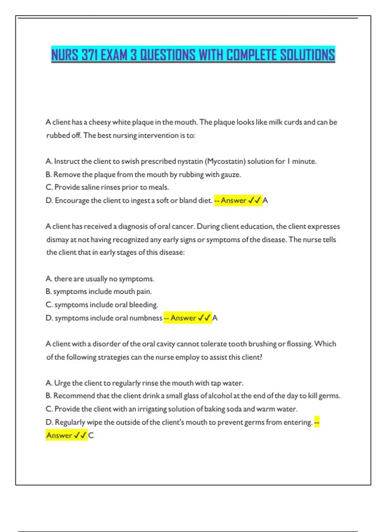 NURS 371 EXAM 3 QUESTIONS WITH COMPLETE SOLUTIONS
