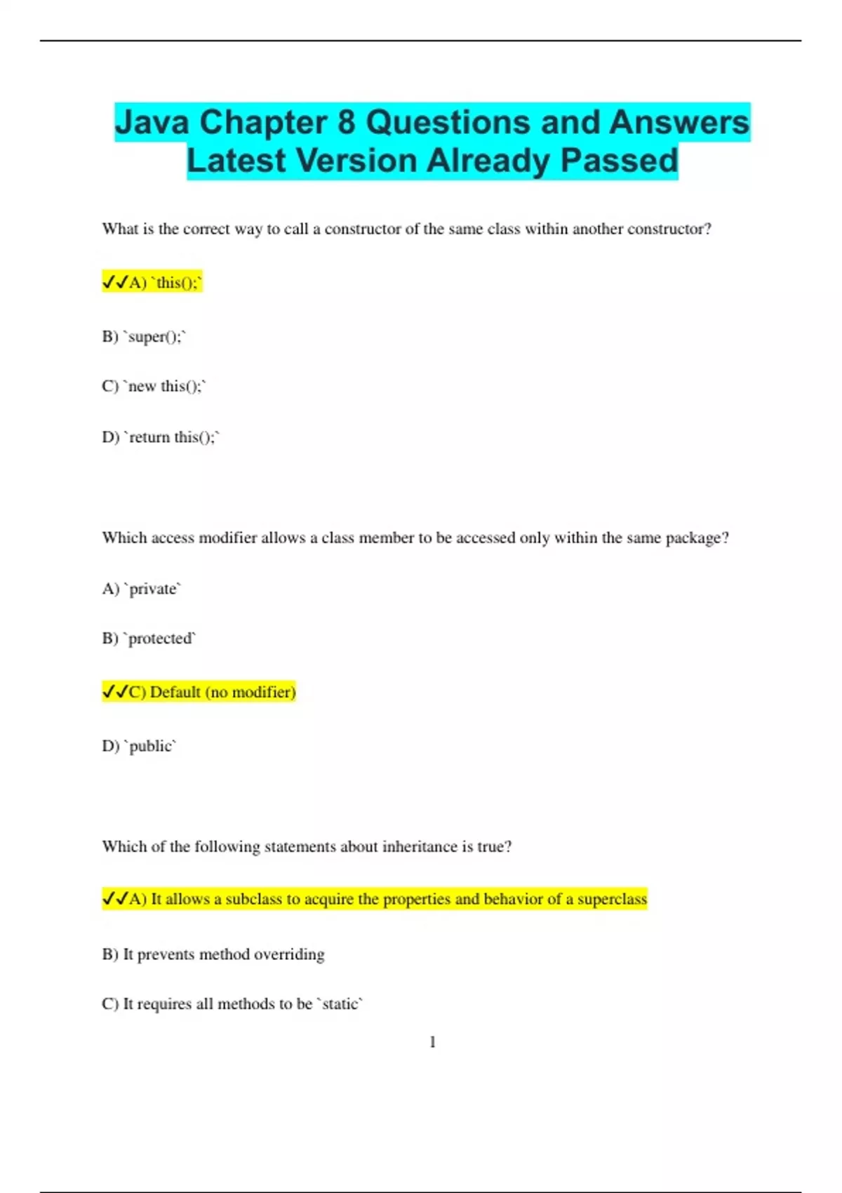 ✔✔C) Default (no modifier)