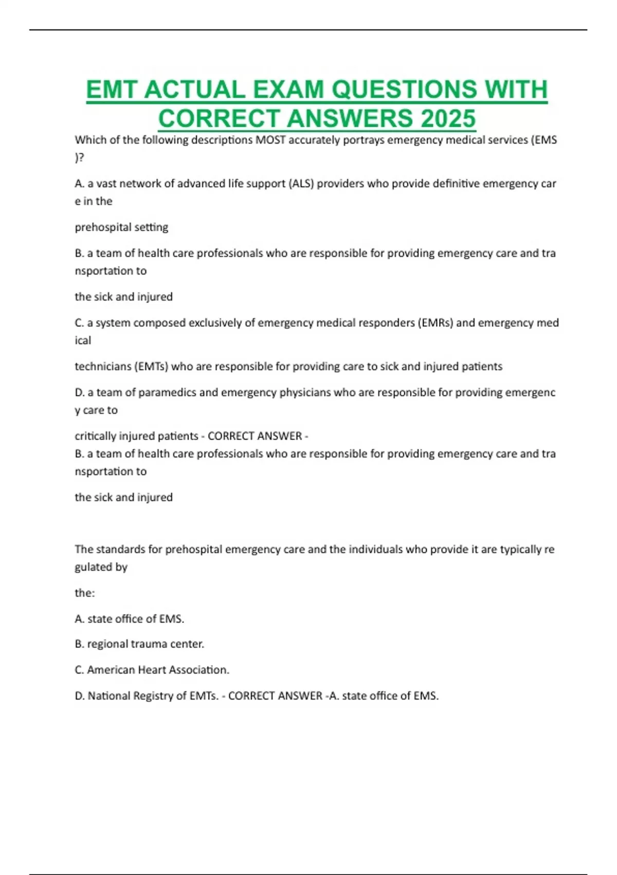 EMT ACTUAL EXAM QUESTIONS WITH