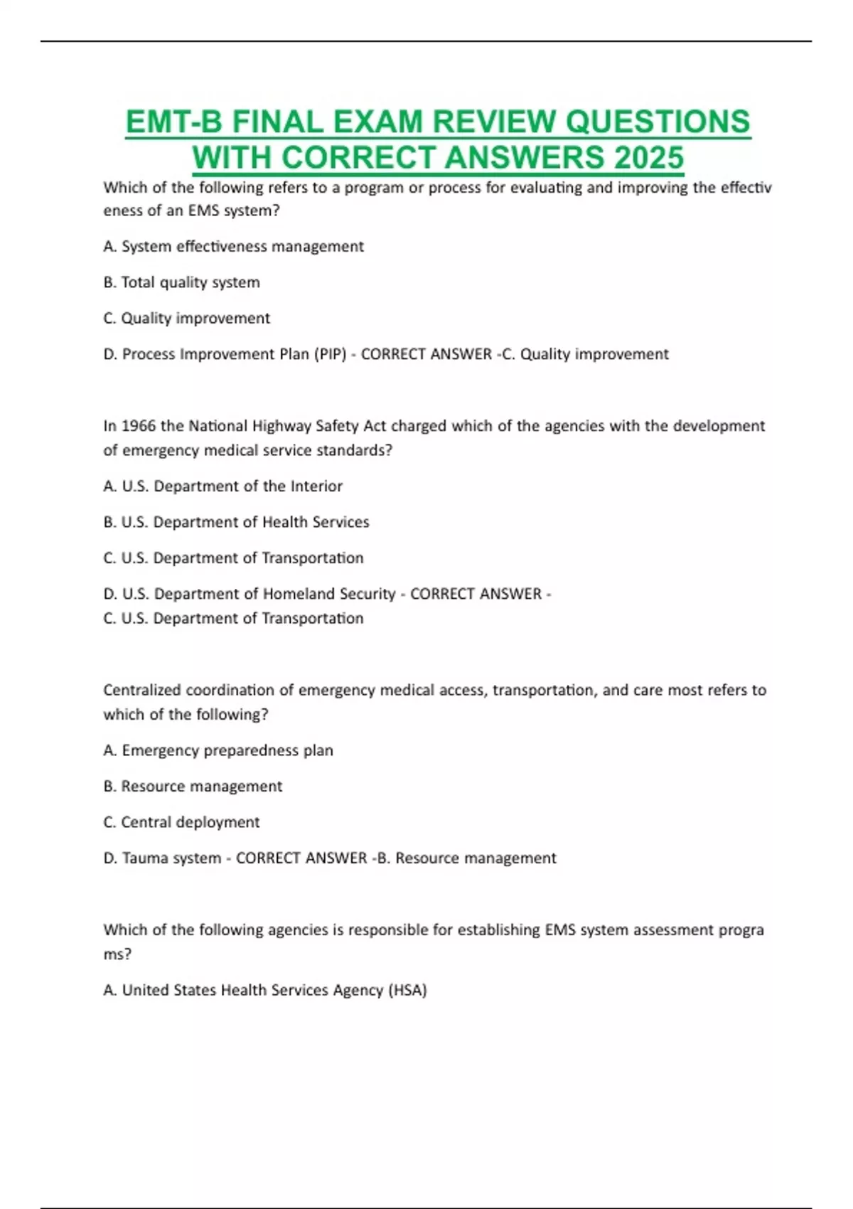 EMT-B FINAL EXAM REVIEW QUESTIONS WITH CORRECT ANSWERS 2025