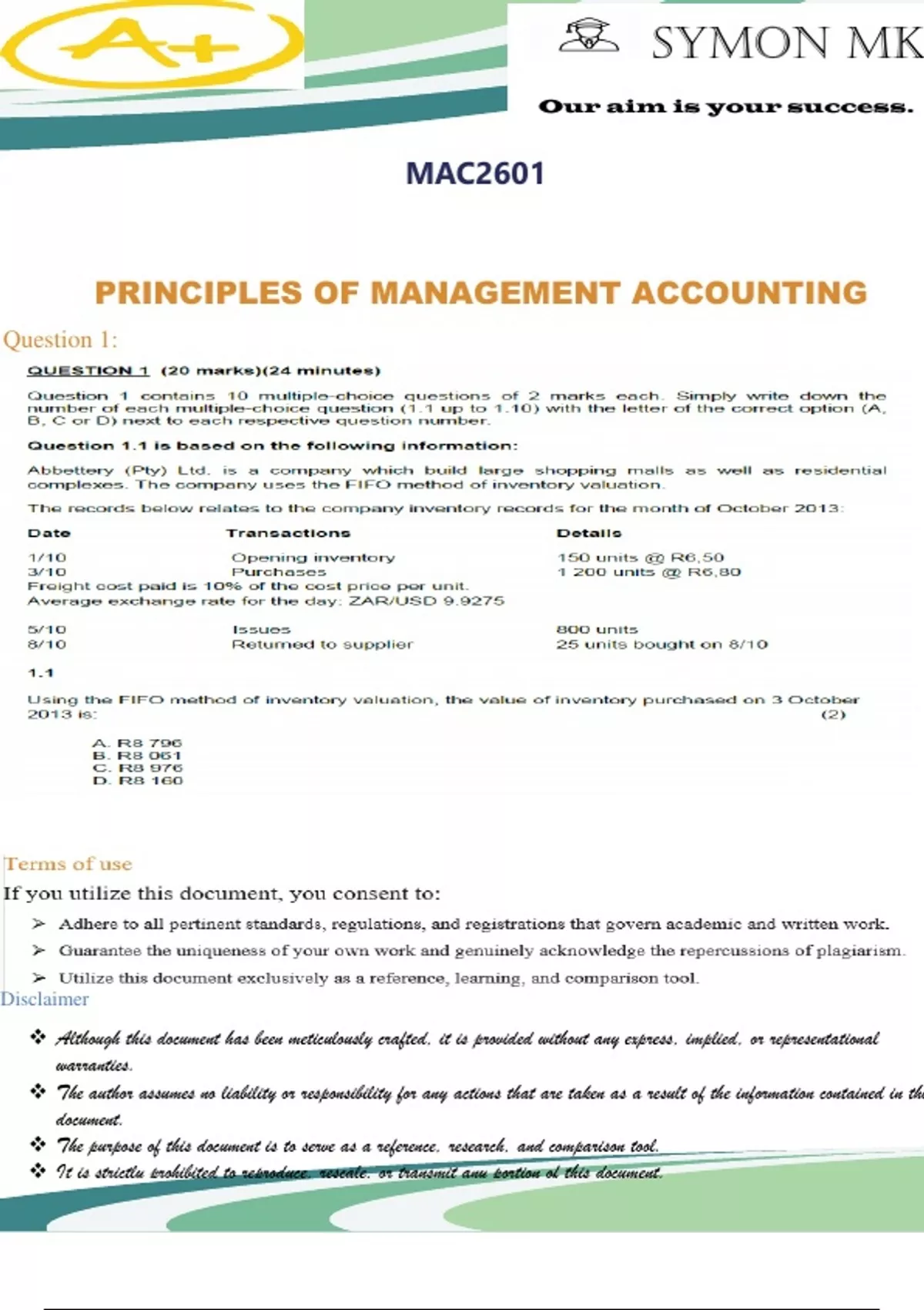 PRINCIPLES OF MANAGEMENT ACCOUNTING
