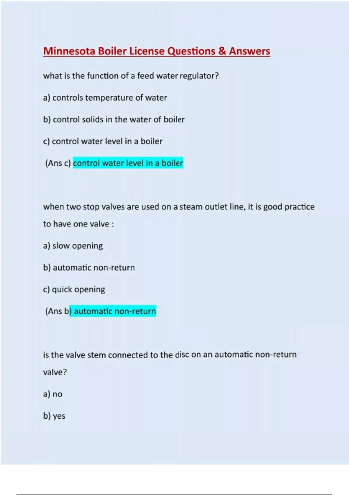 Boiler License Exam Questions & Answers(Minnesota Boiler License ): Complete Solution: Latest Updated A+ Score Guide