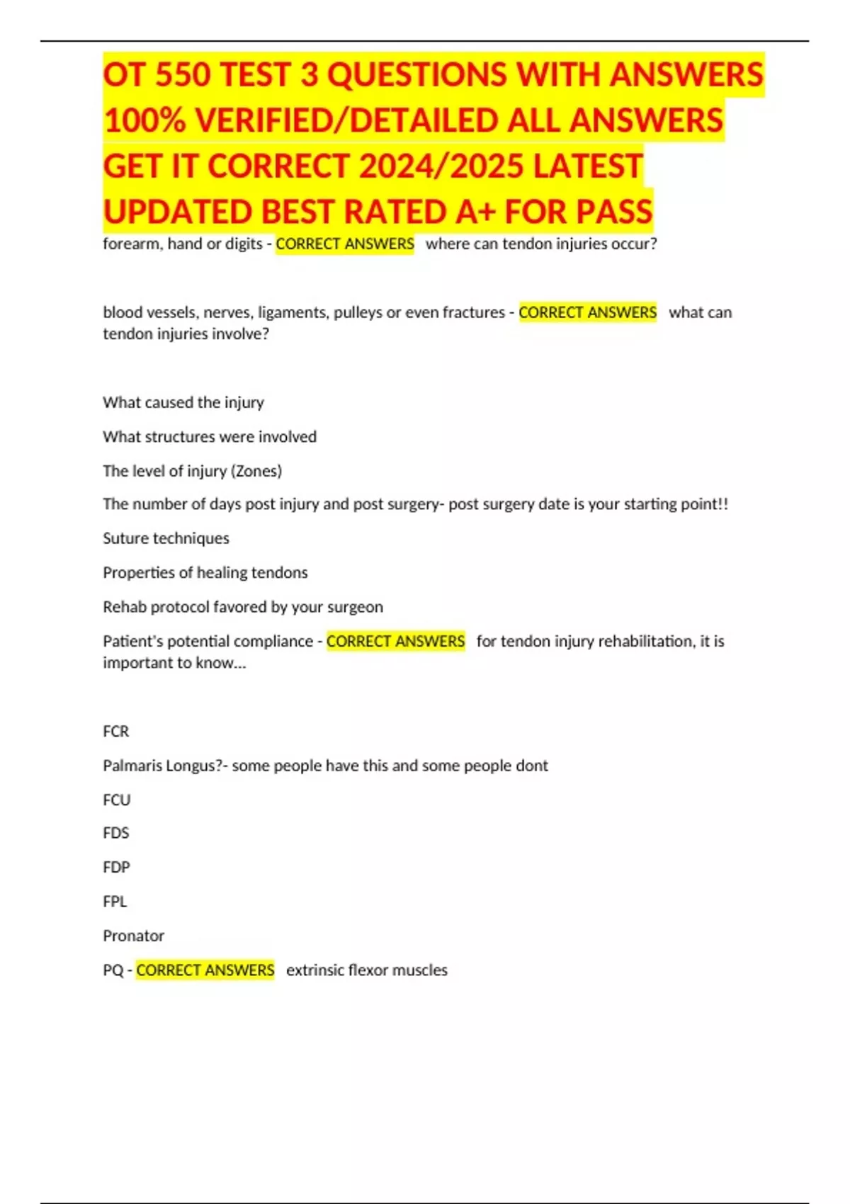 CORRECT ANSWERS flexor zone 1