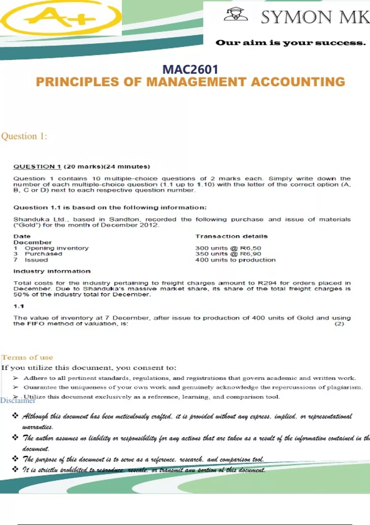 PRINCIPLES OF MANAGEMENT ACCOUNTING
