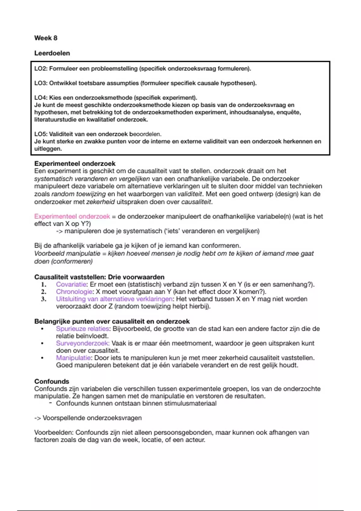 • Manipulatie: Door iets te manipuleren kun je met meer zekerheid causaliteit vaststellen.
