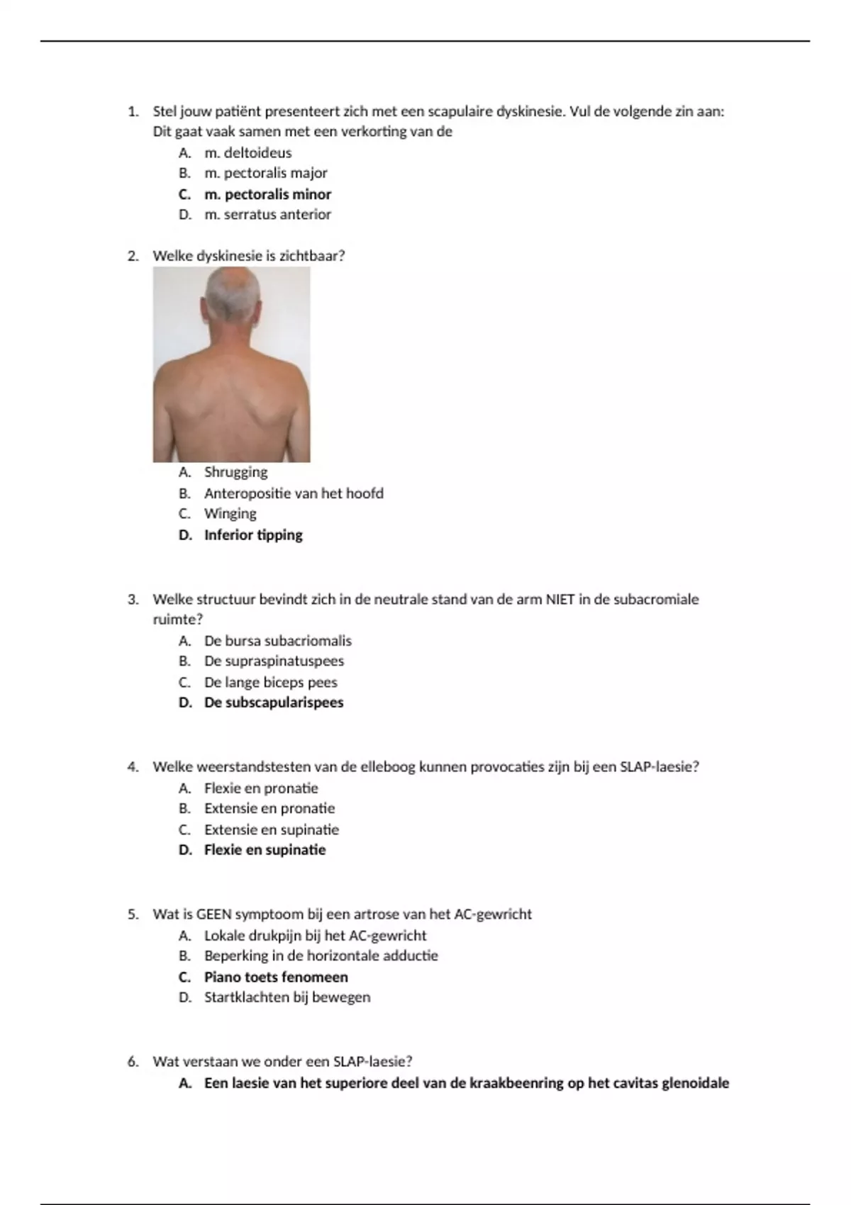 1. Stel jouw patiënt presenteert zich met een scapulaire dyskinesie. Vul de volgende zin aan: