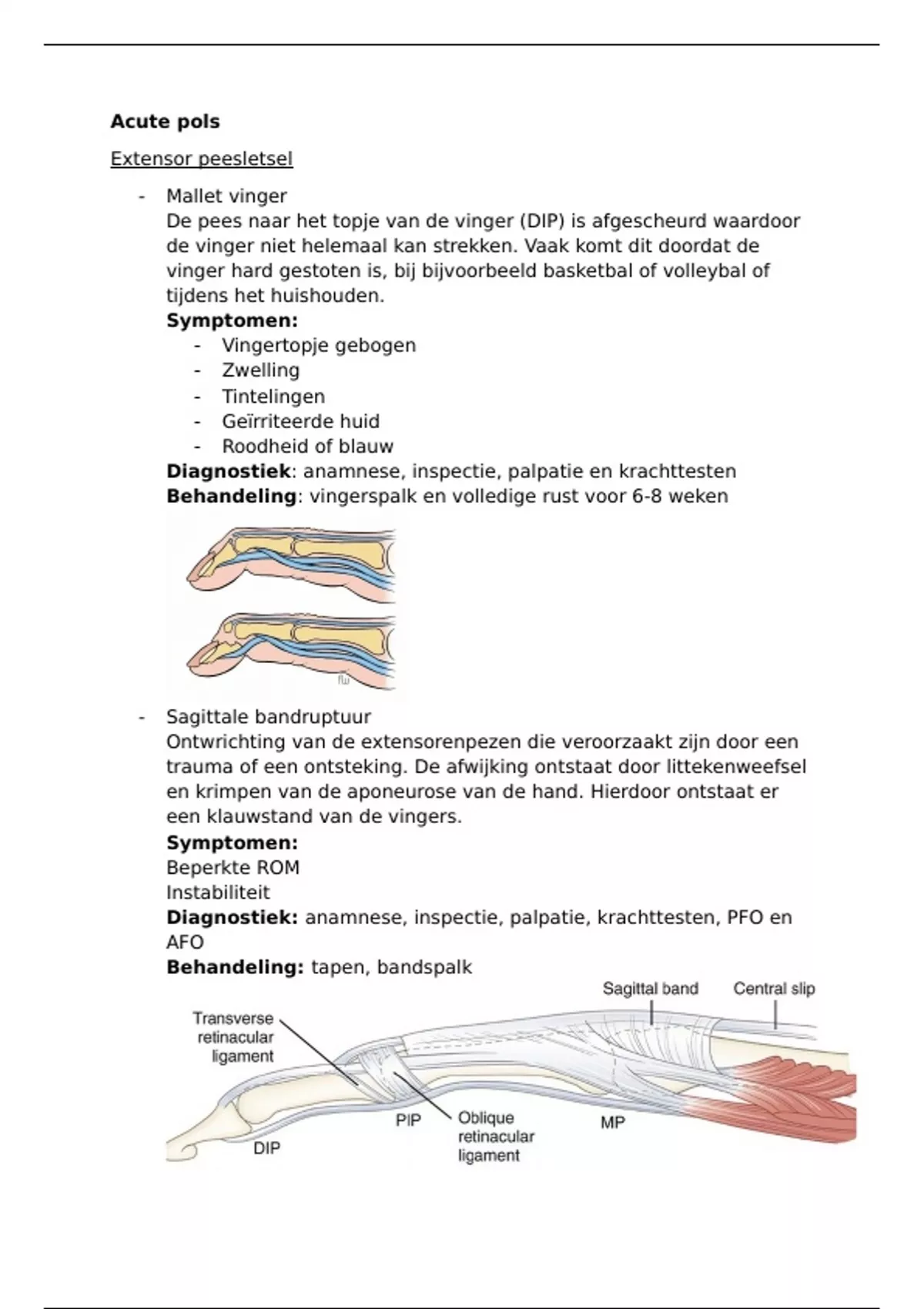 Behandeling: vingerspalk en volledige rust voor 6-8 weken